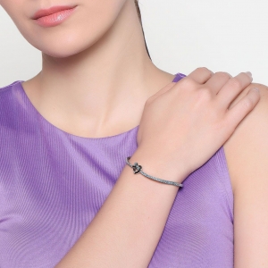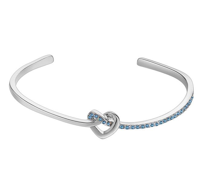 Hermosa pulsera, en baño de oro blanco de 18 quilates, diseño de nudo en forma de corazón, con incrustaciones de cristales en color azul.