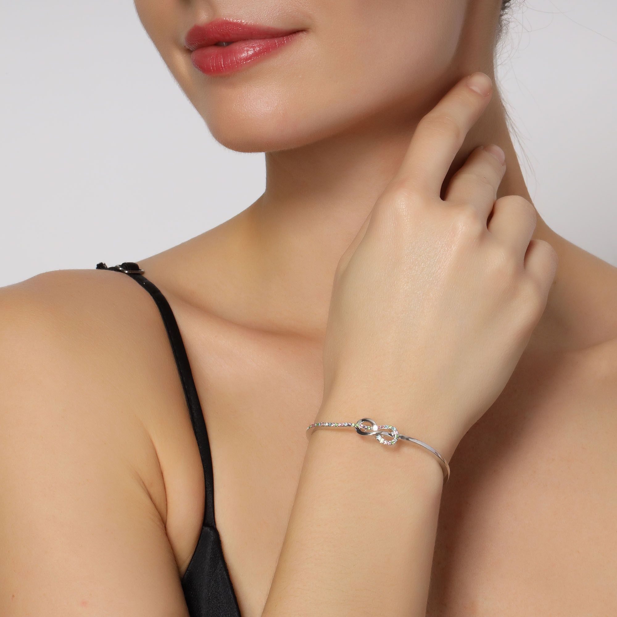 infinito, con incrustaciones de cristales en colores.