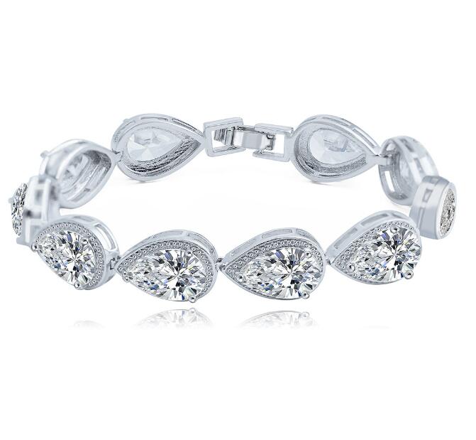 brazalete, en baño de oro blanco de 18 quilates, diseño de gota con incrustaciones
