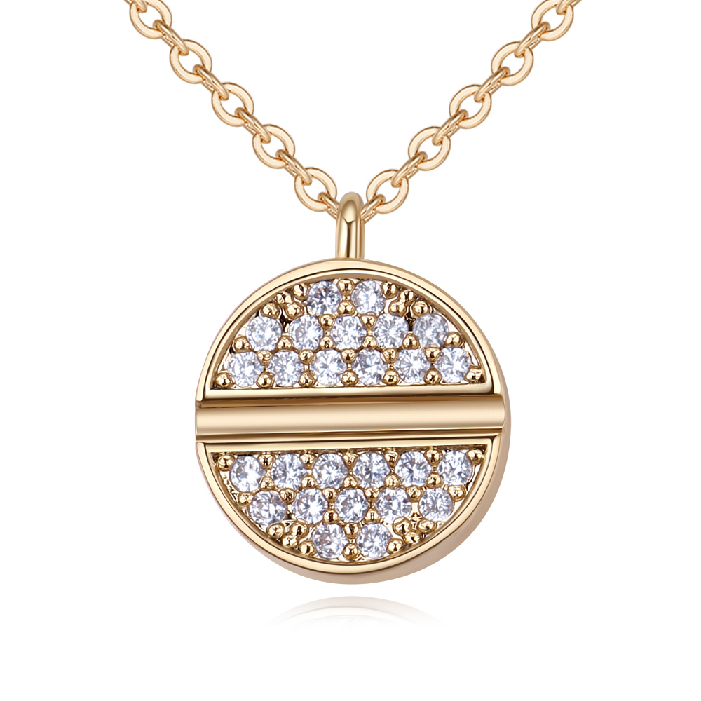 Dije con cadena en baño de oro amarillo de 18 quilates, diseño de círculo con incrustación de cristales en color blanco. Fabricado en una estructura de aleación de platino con rodio sin níquel