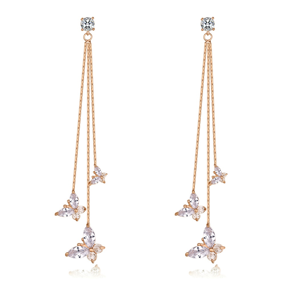 en baño de oro amarillo de 18 quilates, diseño de péndulo con mariposas e