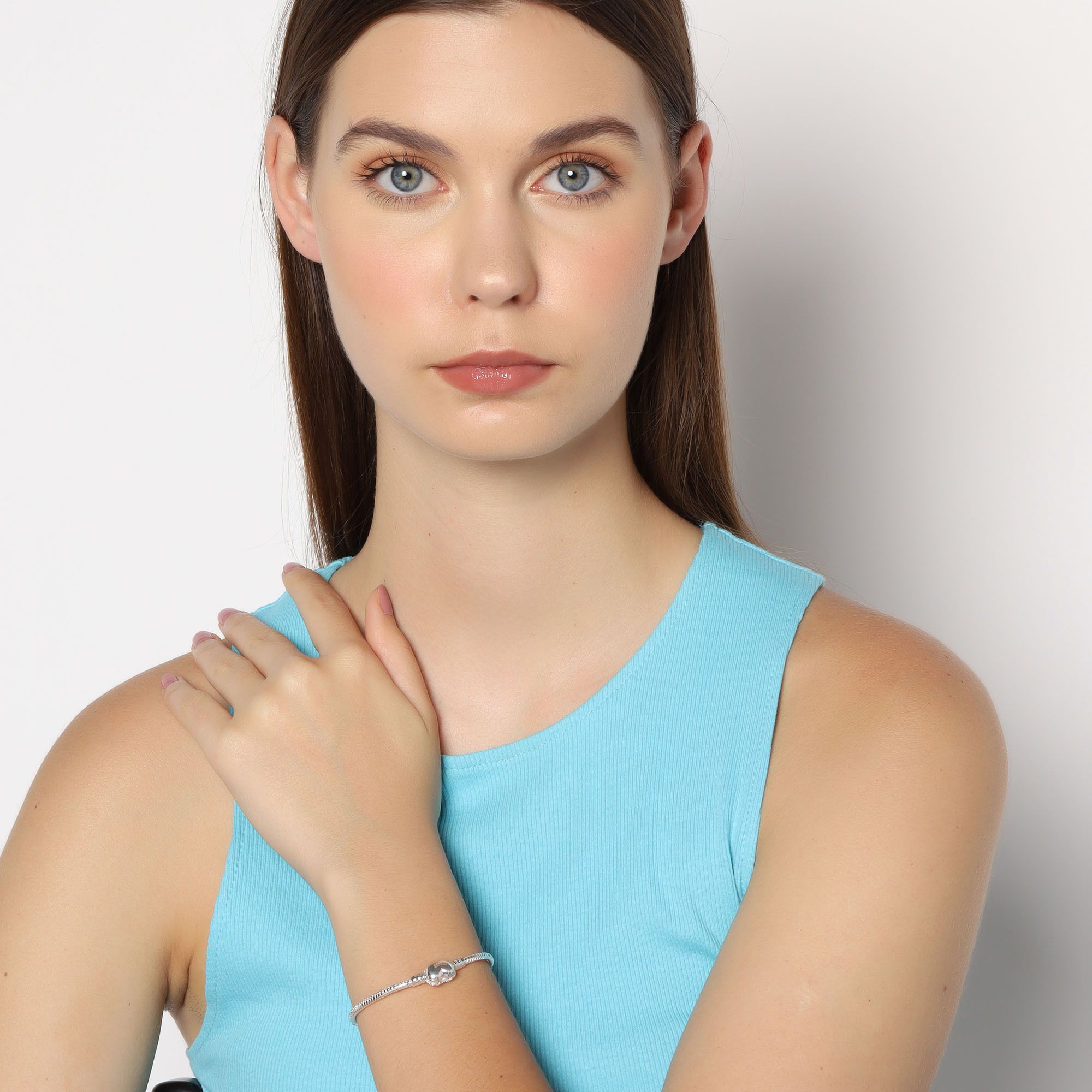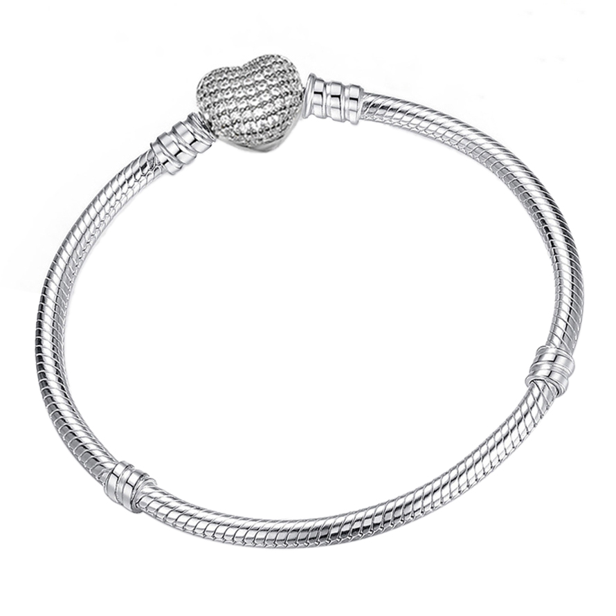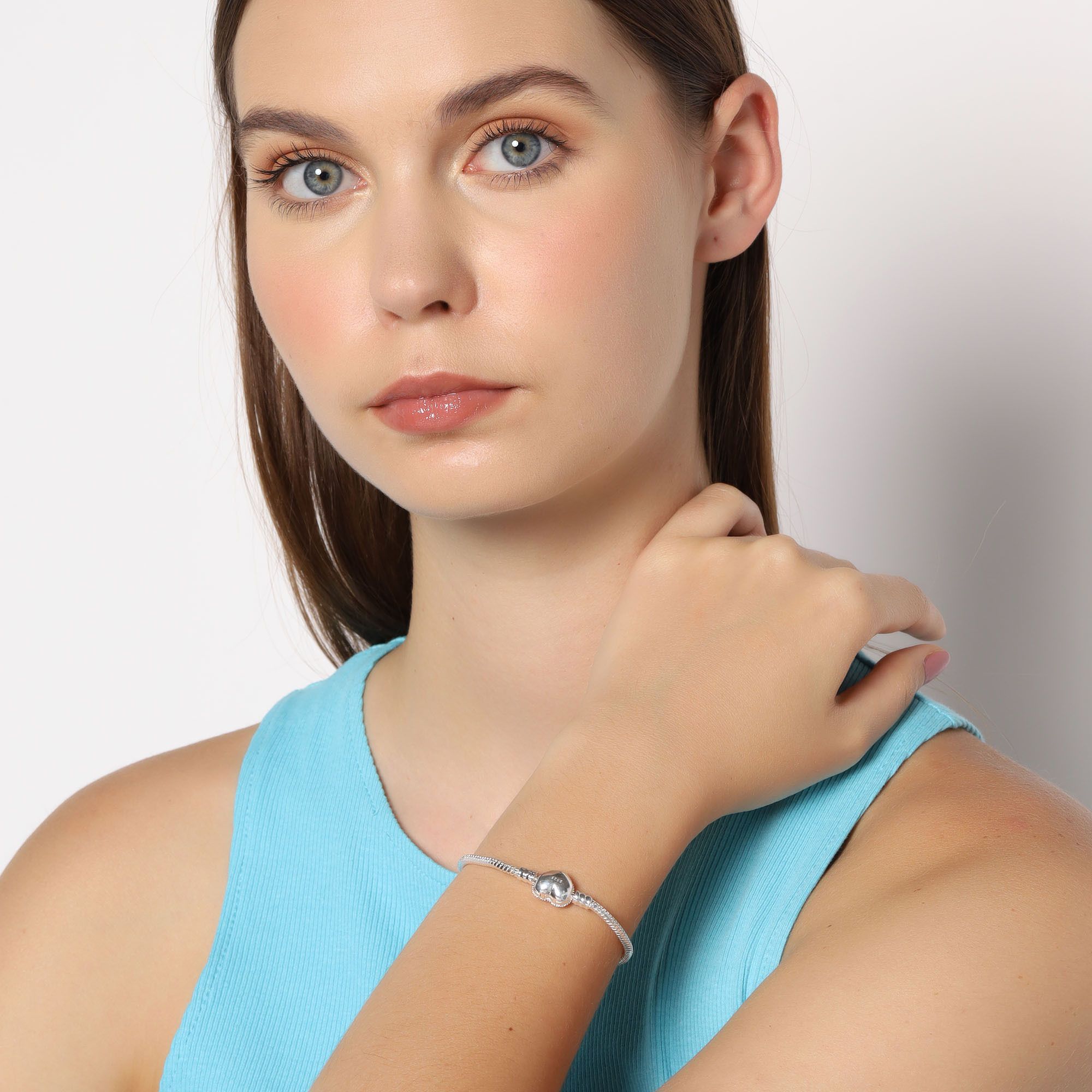 Fina pulsera de plata 925 con detalle de corazón e incrustaciones de cristales en color blanco.