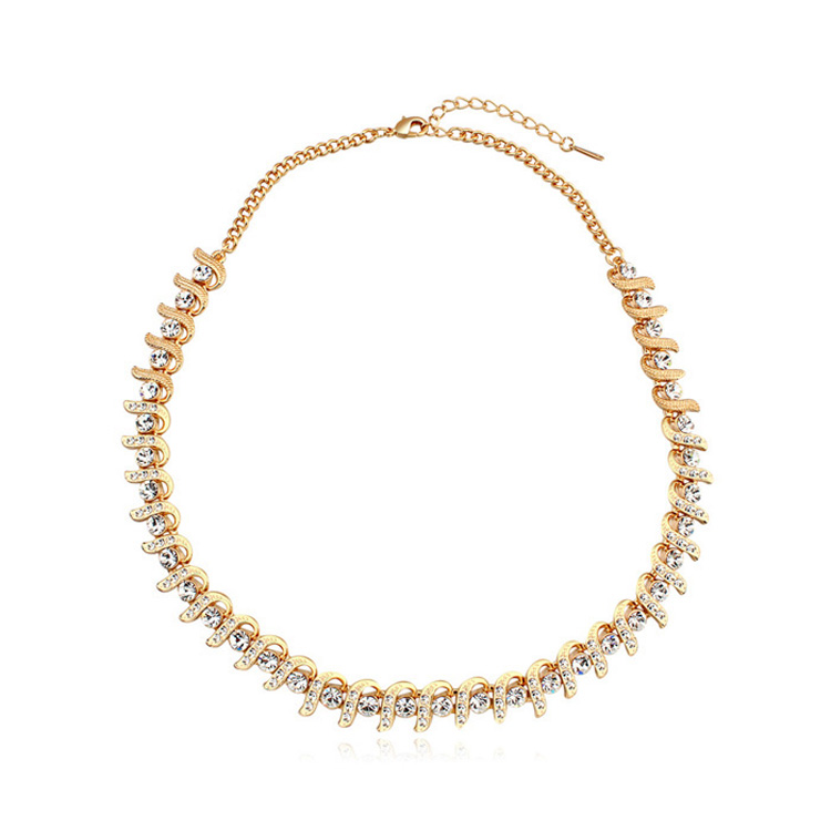 Exquisito Collar en baño de oro amarillo de 18 quilates, diseño entrelazado, con incrustaciones de cristales blancos corte brillante.