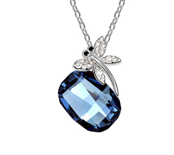 Elegante Dije en baño de oro blanco de 18 quilates, diseño de cuadro y libélula con incrustación de cristales en color azul. Fabricado en una estructura de aleación de platino con rodio sin níquel 1. joyería Hipoalergénica. 2. Incluye cajita de joyería. 3. Garantía de 30 días por defectos de fabrica.