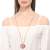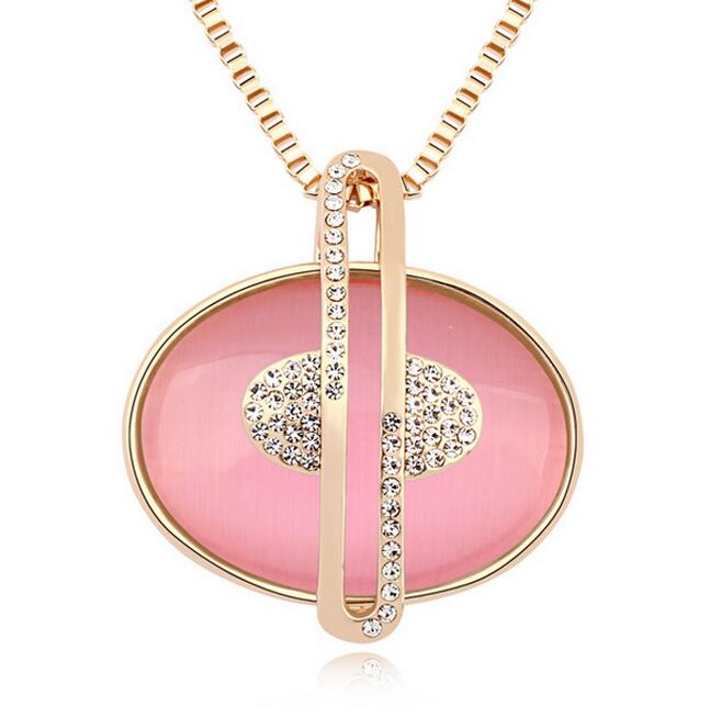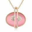 Collar para Sweater en baño de oro amarillo de 18 quilates con piedra preciosa en color rosa e incrustaciones de cristales blancos.