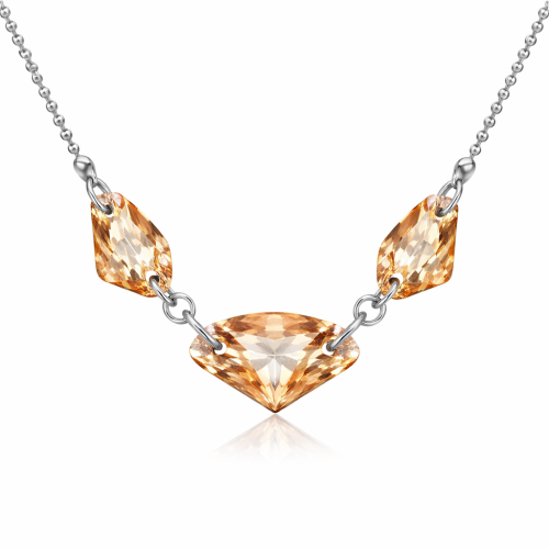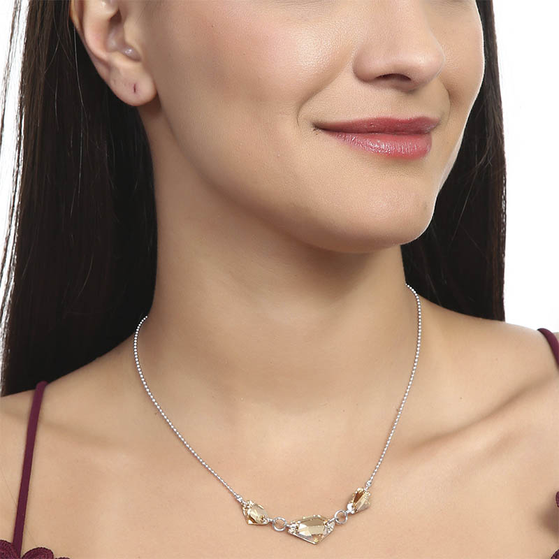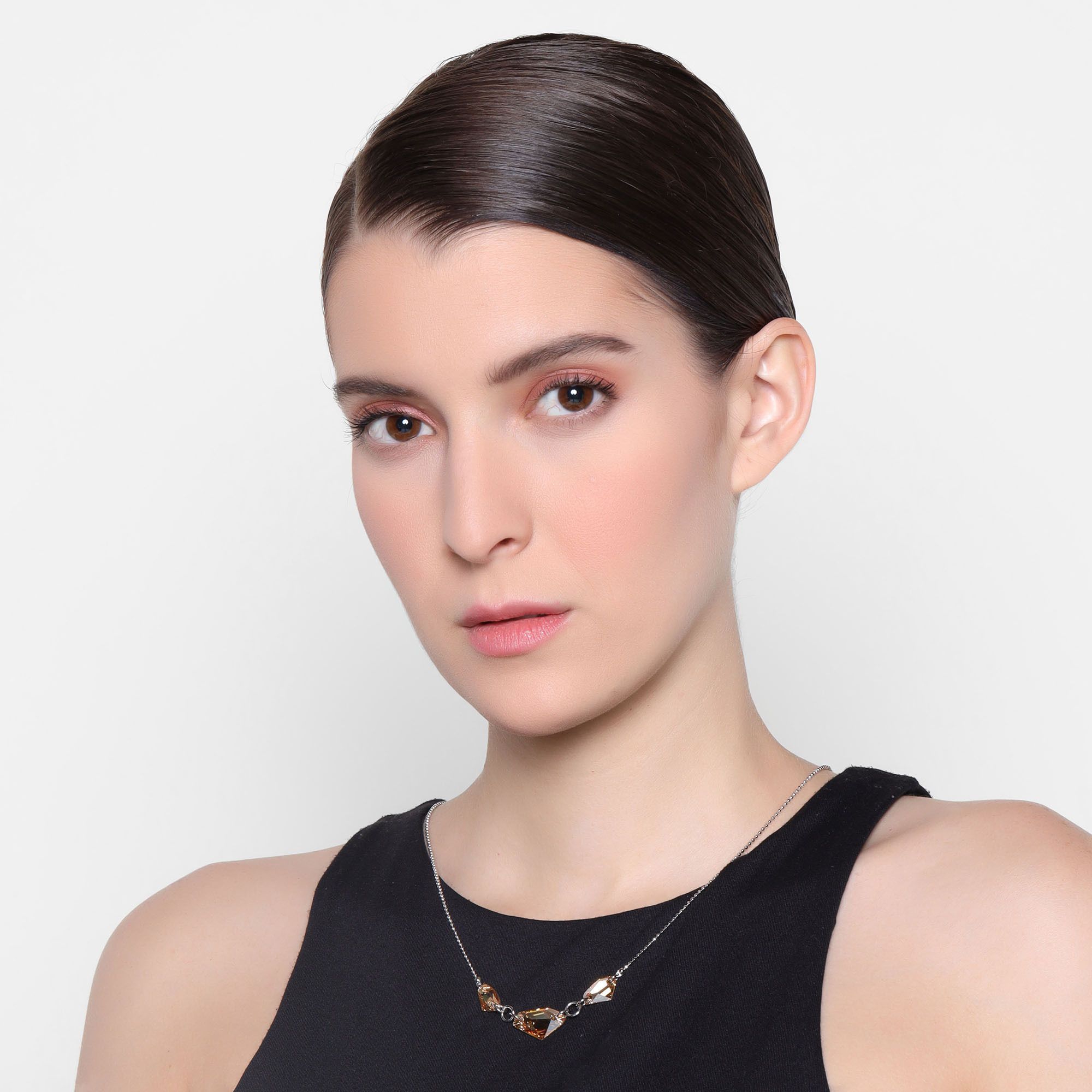 Collar en baño de oro blanco de 18 quilates, fino diseño con cristales en color ámbar.