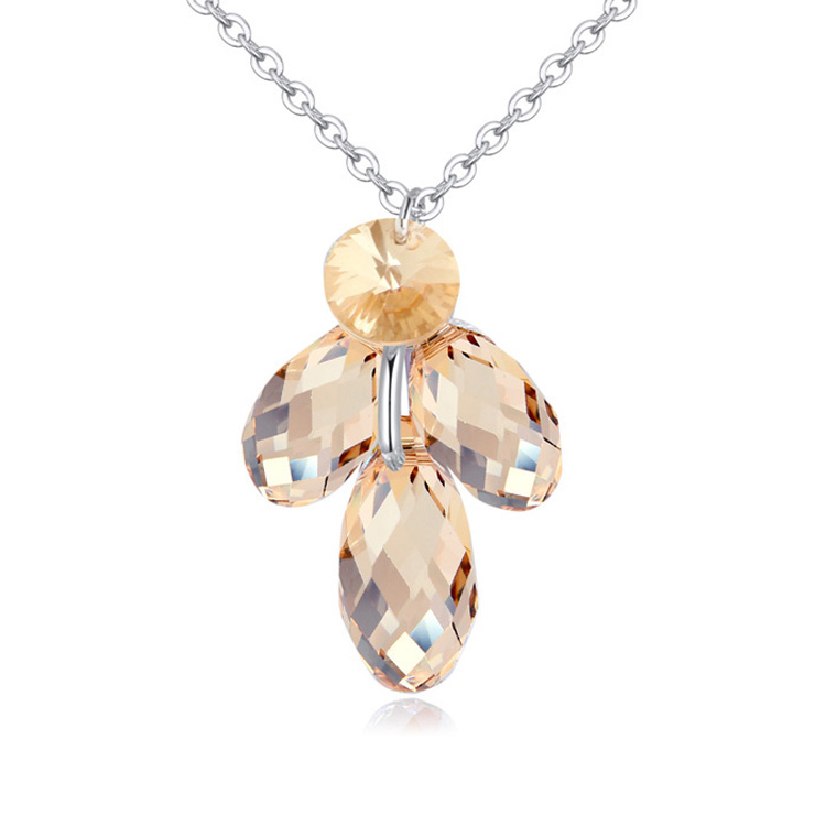 Dije con cadena en baño de oro blanco de 18 quilates, Hermoso diseño con cristales en color ámbar Fabricado en una estructura de aleación de platino con rodio sin níquel 1. joyería Hipoalergénica. 2. Incluye cajita de joyería. 3. Garantía de 30 días por defectos de fabrica.