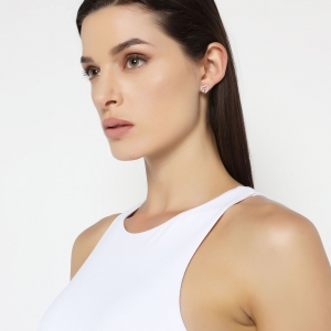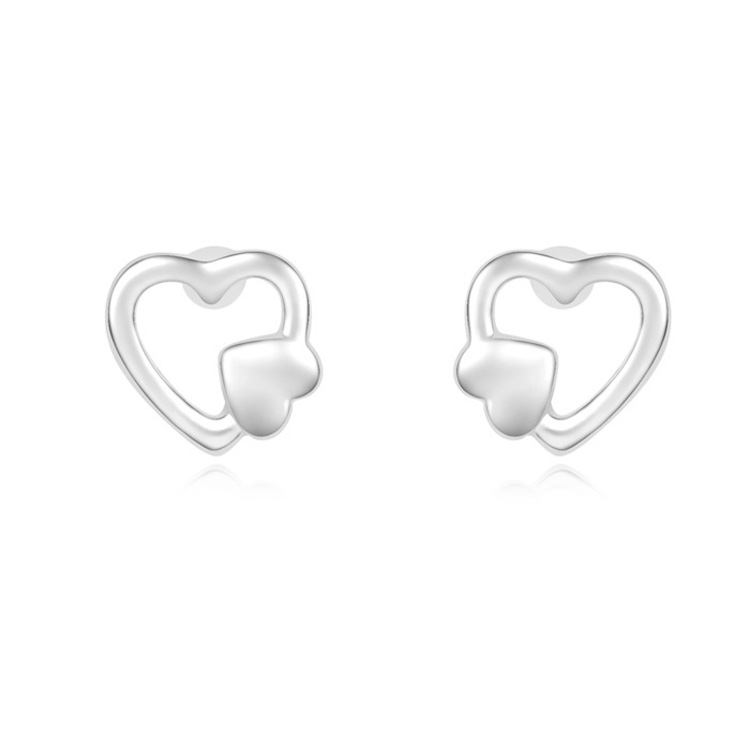 Aretes en baño de oro blanco de 18 quilates, bello diseño de corazones en acabado brillante.