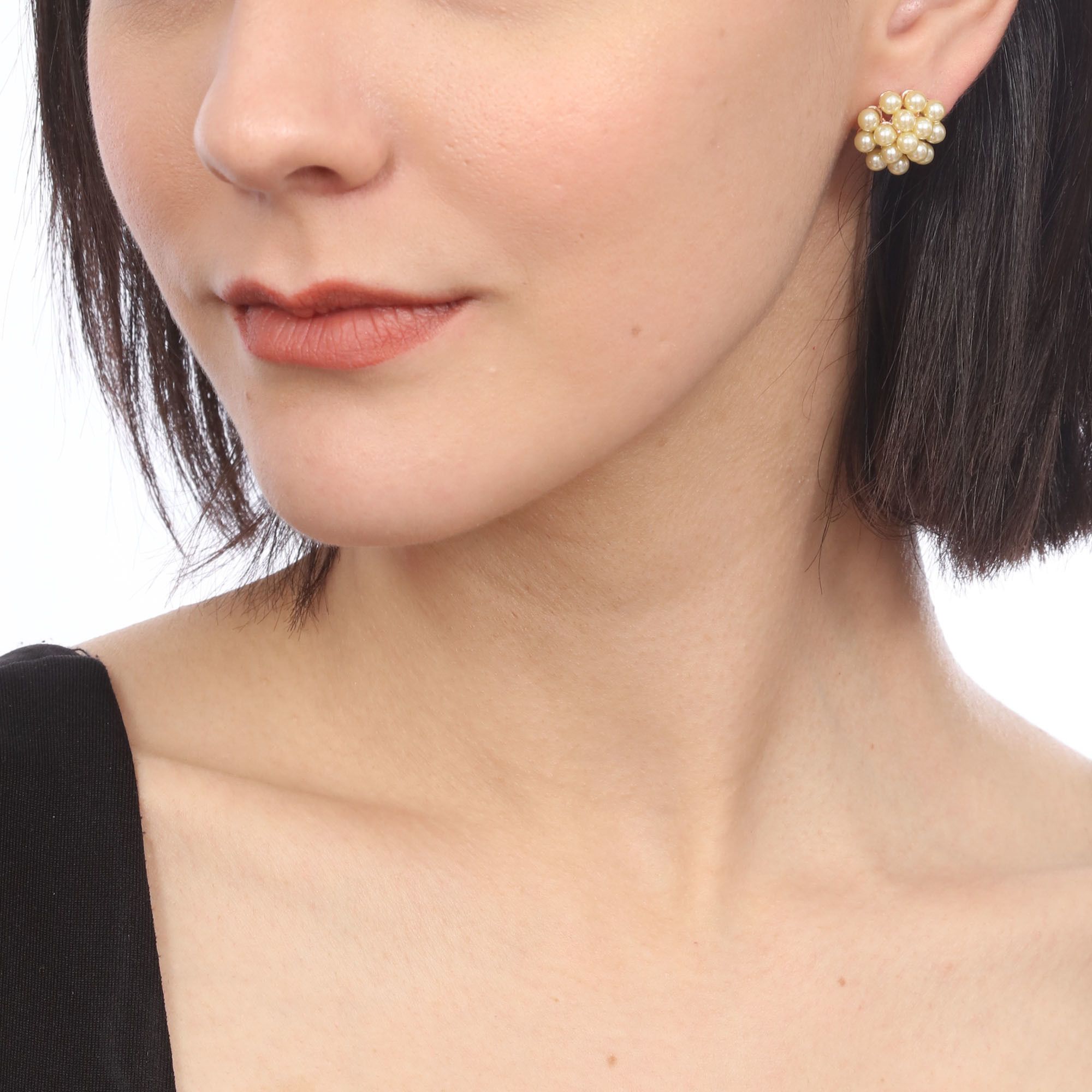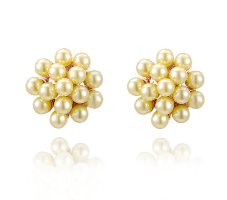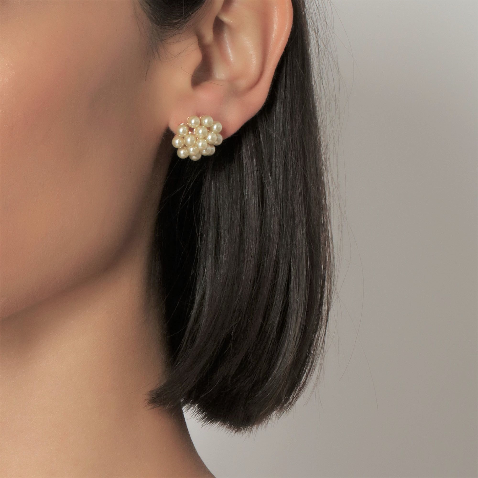 Lindos aretes en baño de oro rosa de 18 quilates, diseño estilo bouquet, con pequeñas perlas color beige.