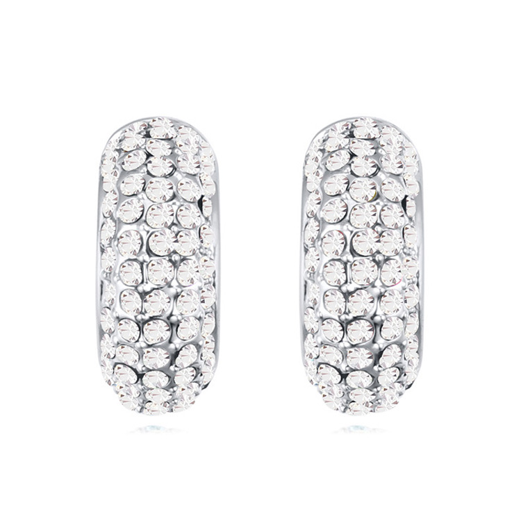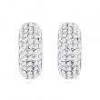 Lindas arracadas en baño de oro blanco de 18 quilates, diseño estilo convexo, con incrustaciones de cristales en color blanco.