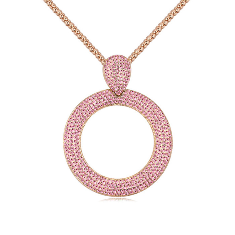 Collar en baño de oro amarillo de 18 quilates, Elegante diseño con incrustación de cristales en color rosa. Fabricado en una estructura de aleación de platino con rodio sin níquel 1. joyería Hipoalergénica. 2. Incluye cajita de joyería. 3. Garantía de 30 días por defectos de fabrica.