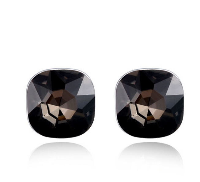 Aretes en baño de oro blanco de 18 quilates, diseño de cuadro, con cristal en color humo corte cushion.
