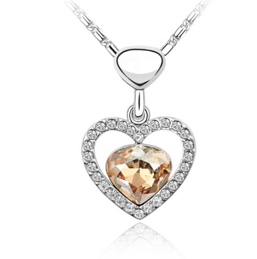 Dije con cadena en baño de oro banco de 18 quilates, diseño de corazón con incrustación de cristales en color ámbar y blanco. Fabricado en una estructura de aleación de platino con rodio sin níquel 1. joyería Hipoalergénica. 2. Incluye cajita de joyería. 3. Garantía de 30 días por defectos de fabrica.