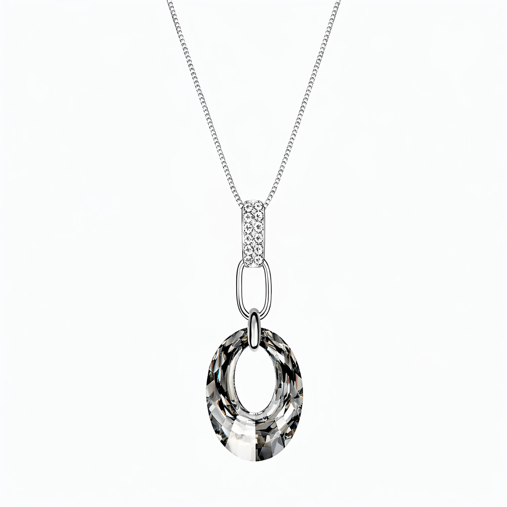 Delicado Dije en baño de oro blanco de 18 quilates, de Elegante diseño con cristal en color negro.