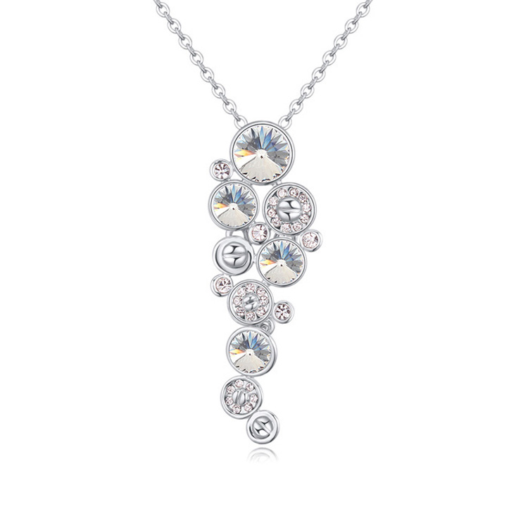Elegante Dije en baño de oro blanco de 18 quilates, diseño con incrustación de cristales en color blanco. Fabricado en una estructura de aleación de platino con rodio sin níquel 1. joyería Hipoalergénica. 2. Incluye cajita de joyería. 3. Garantía de 30 días por defectos de fabrica.