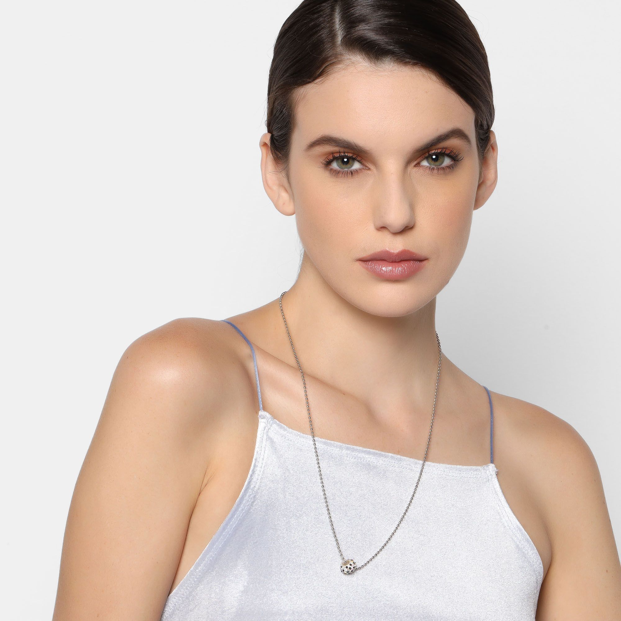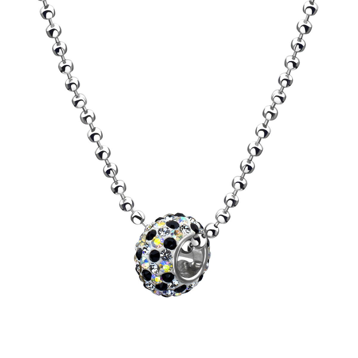 Bead fabricado en acero inoxidable, con elegante diseño, estilo dominó, con fondo blanco e incrustaciones de cristales en color negro y blanco.