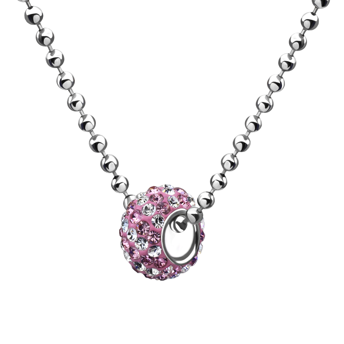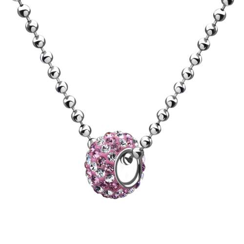 Bead fabricado en acero inoxidable original diseño, con fondo rosa claro e incrustaciones de cristales en color rosa baby y blanco.