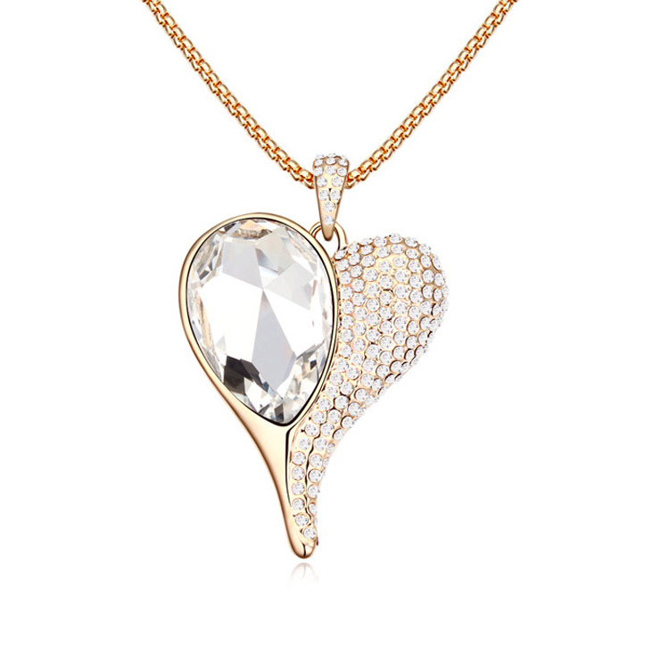 Hermoso Collar en ba�o de oro amarillo de 18 quilates, dise�o en forma de coraz�n con incrustaci�n de cristales en color blanco. Fabricado en una estructura de aleaci�n de platino con rodio sin n�quel 1. joyer�a Hipoalerg�nica. 2. Incluye cajita de joyer�a. 3. Garant�a de 30 d�as por defectos de fabrica.