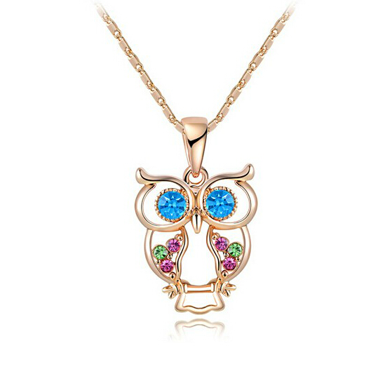 Hermoso Dije en baño de oro rosa de 18 quilates, diseño de búho con incrustación de cristales en color azul, rosa y verde. Fabricado en una estructura de aleación de platino con rodio sin níquel 1. joyería Hipoalergénica. 2. Incluye cajita de joyería. 3. Garantía de 30 días por defectos de fabrica.
