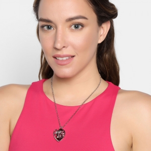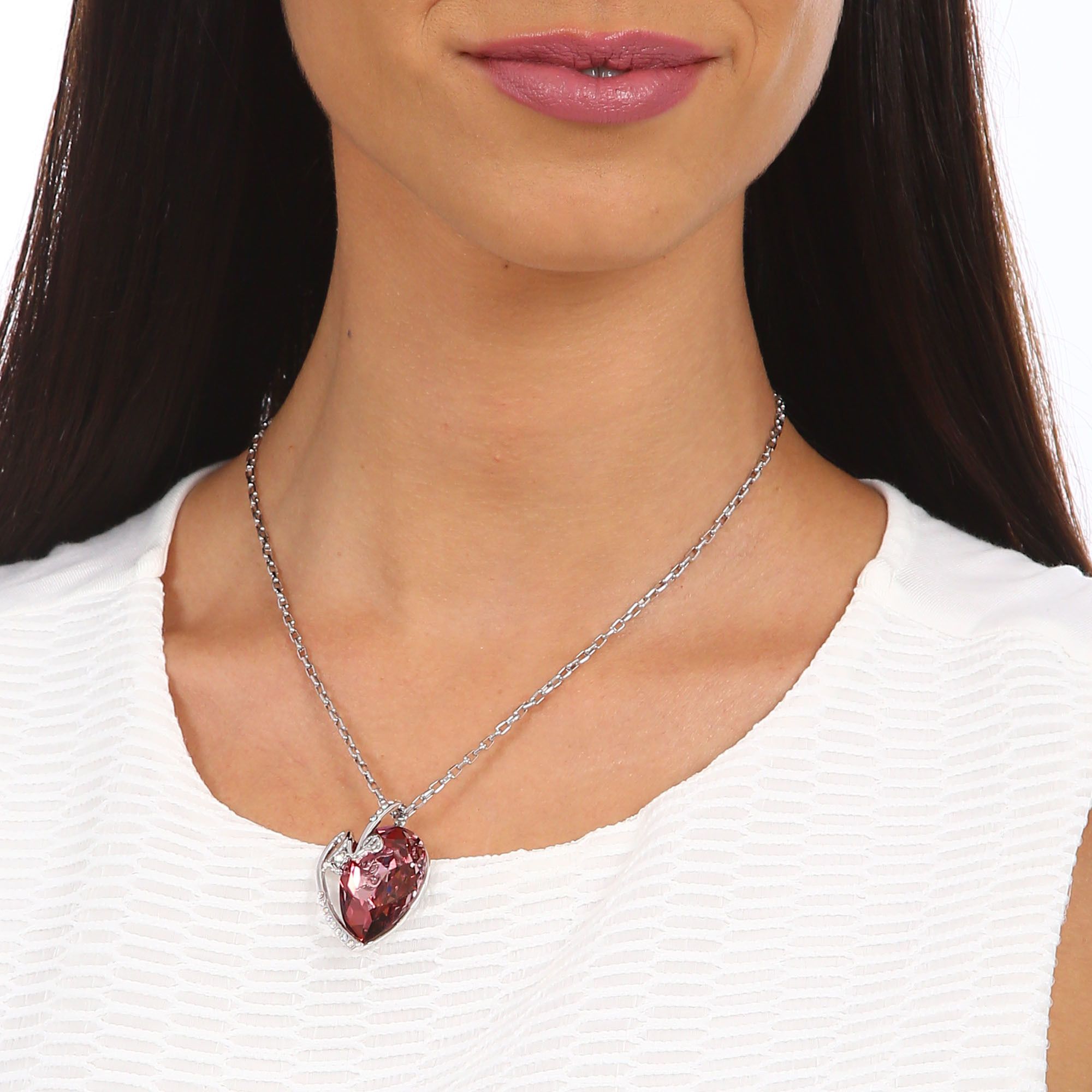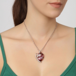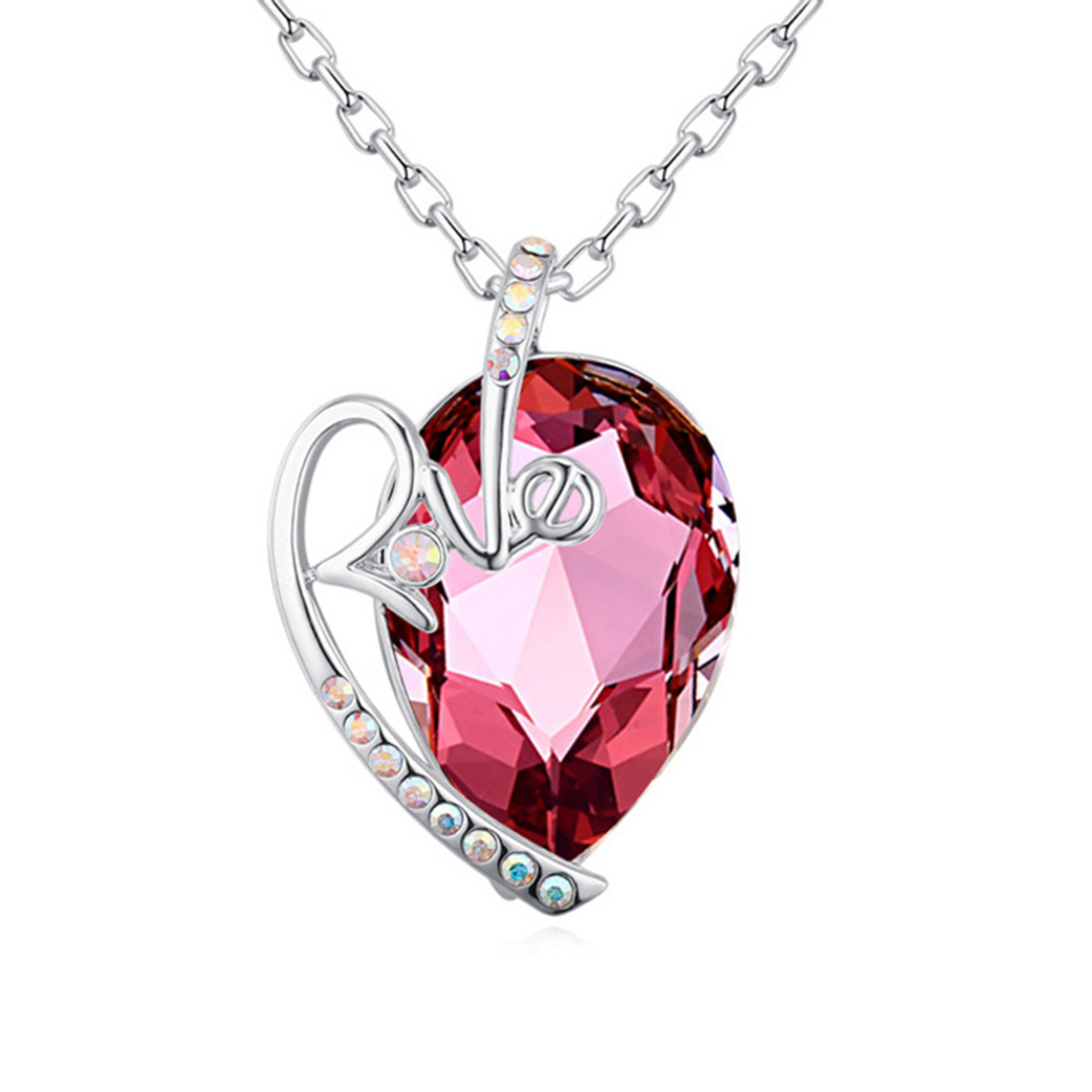 Collar en baño de oro blanco de 18 quilates, con incrustación de cristales en color tornasol y rosa. Fabricado en una estructura de aleación de platino con rodio sin níquel 1. joyería Hipoalergénica. 2. Incluye cajita de joyería. 3. Garantía de 30 días por defectos de fabrica.