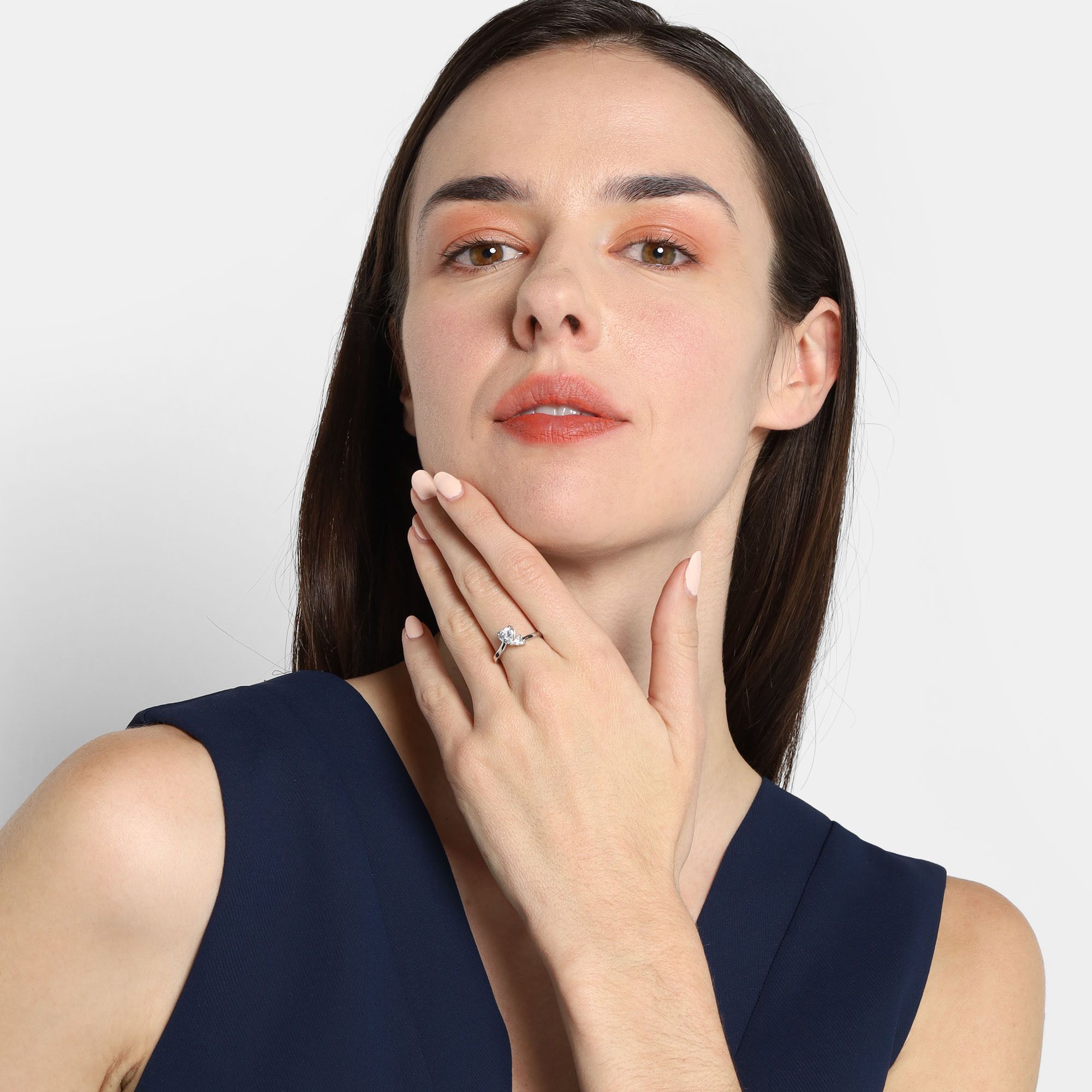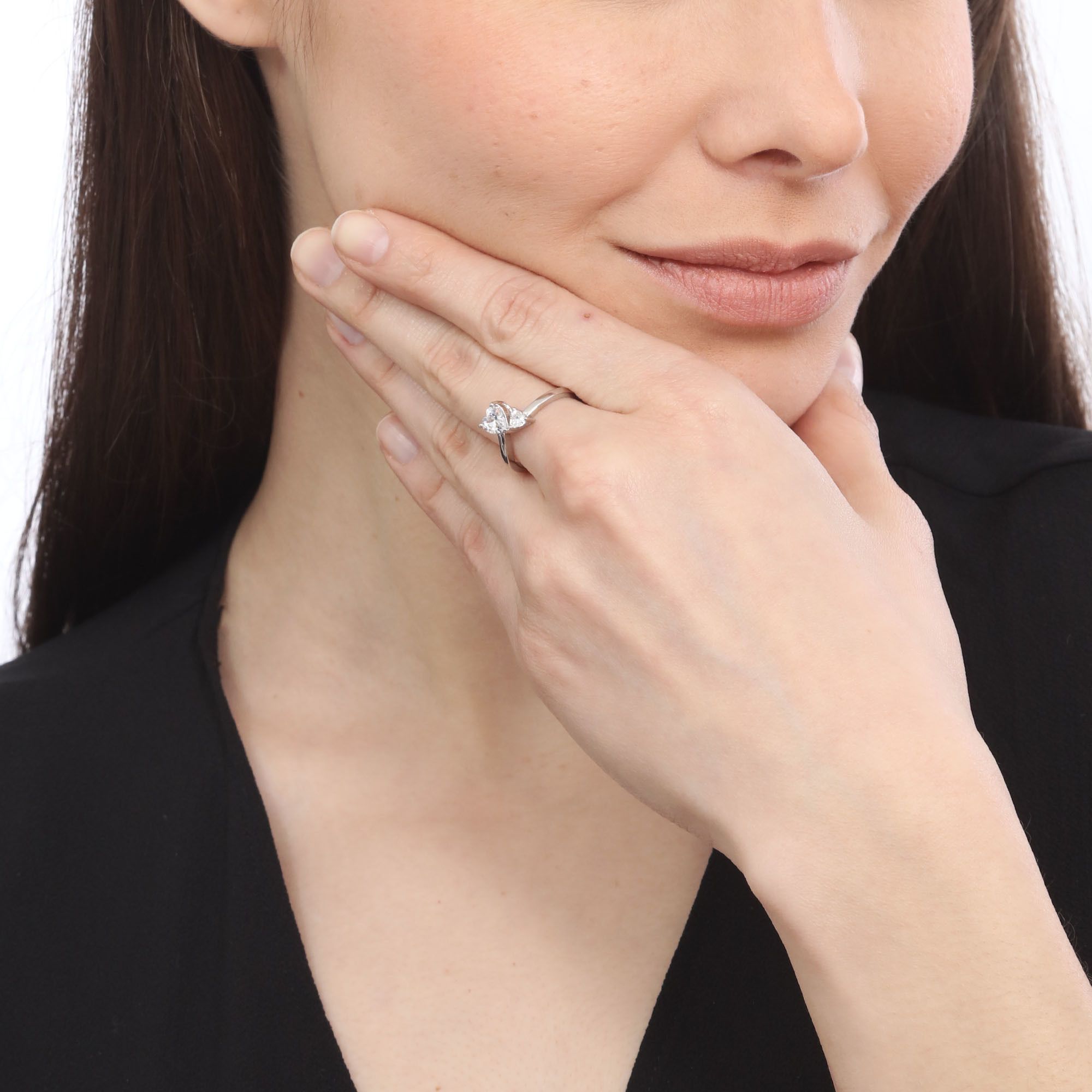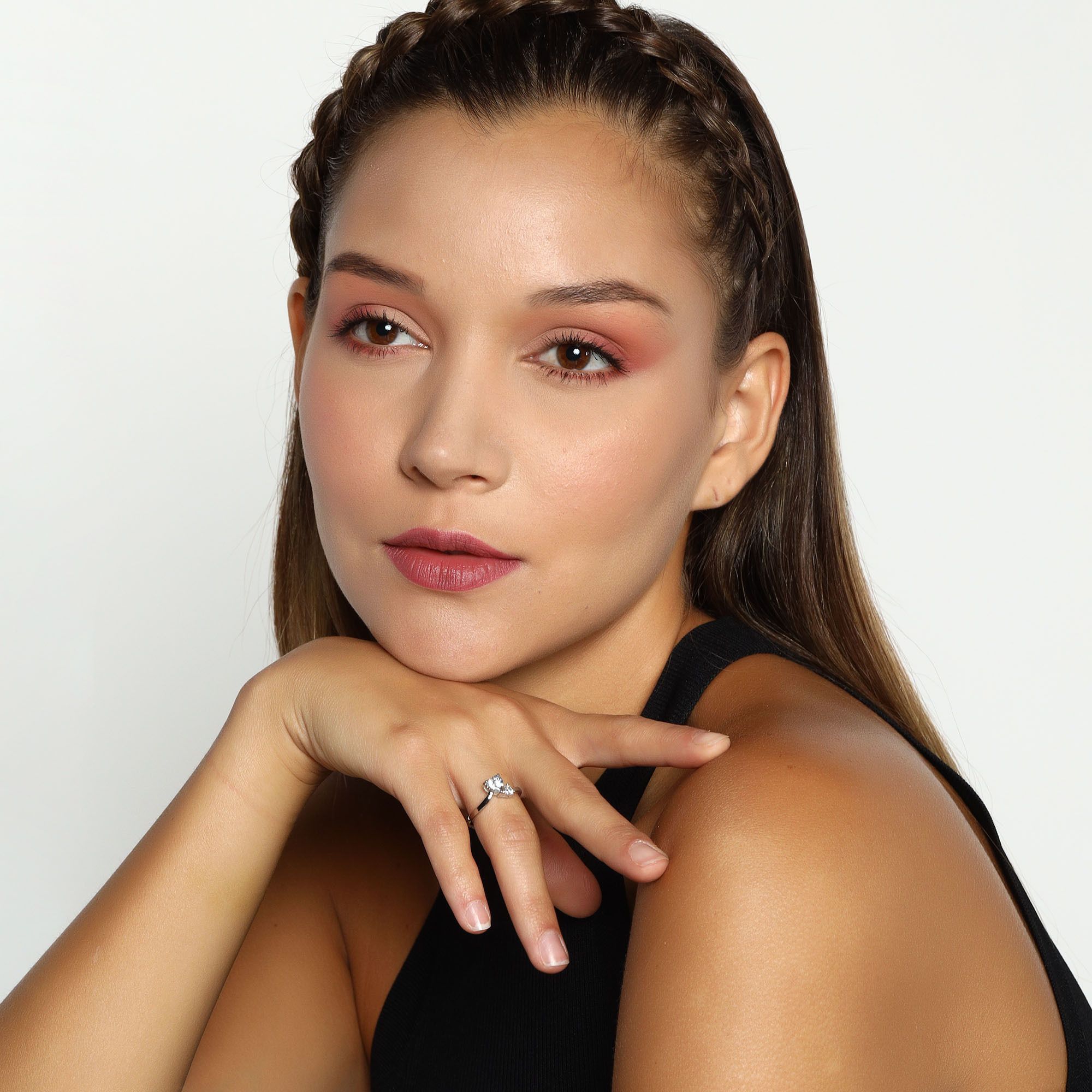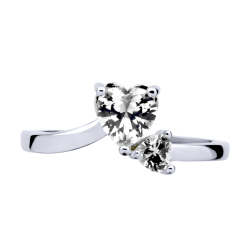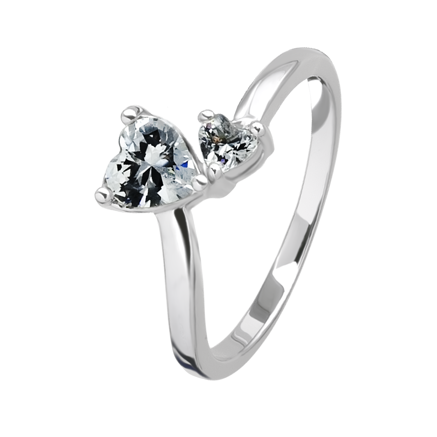 Anillo en baño de oro blanco de 18 quilates, diseño de doble corazón en cristales blancos.