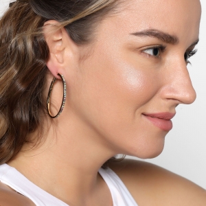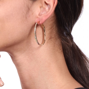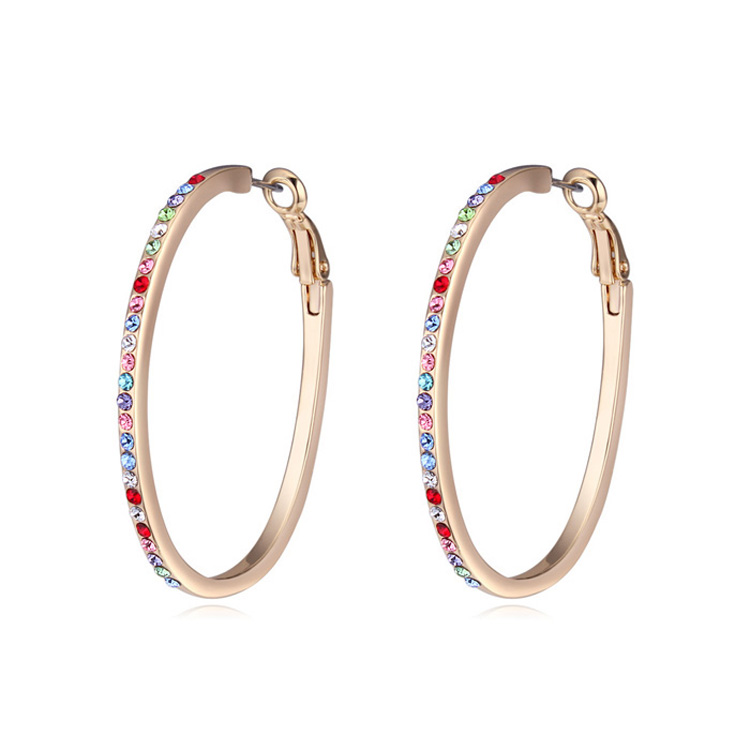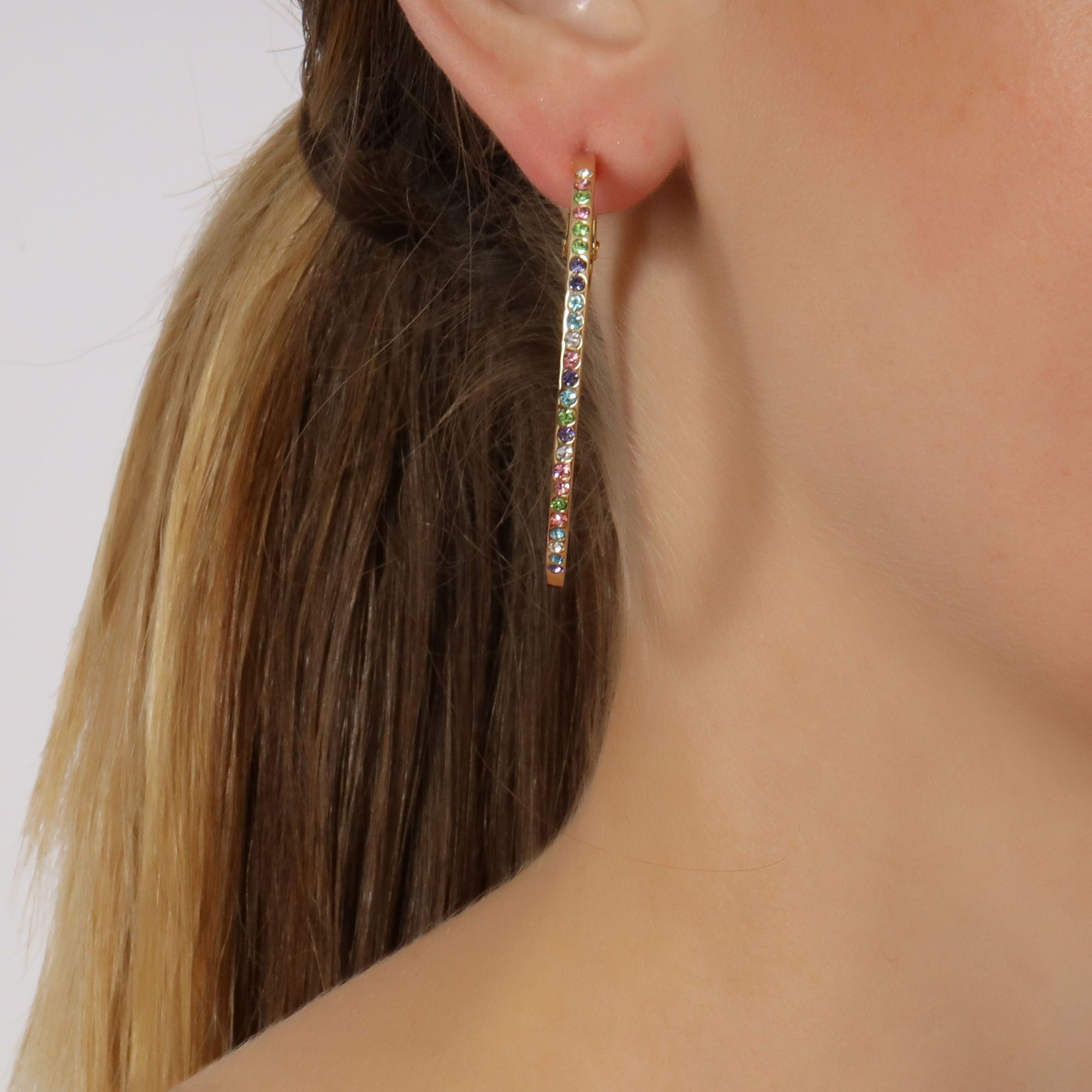 Elegantes arracadas en baño de oro amarillo de 18 quilates, fino diseño, con incrustaciones de cristales multicolores.