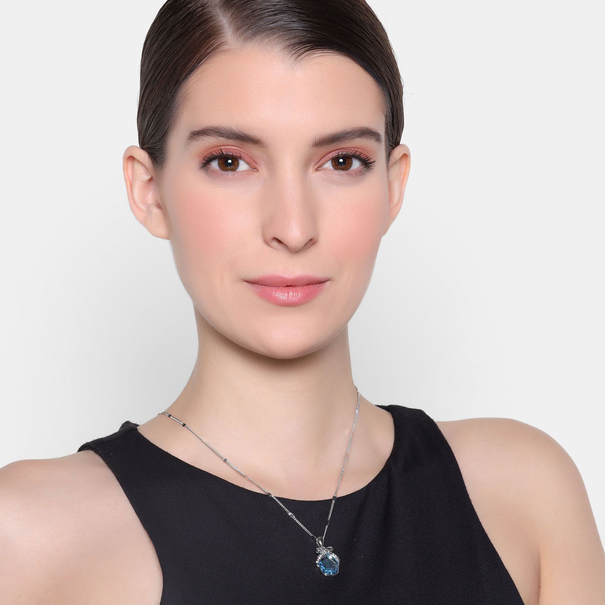 Elegante Dije en baño de oro blanco de 18 quilates, diseño de cuadro y moño con incrustación de cristales en color azul. Fabricado en una estructura de aleación de platino con rodio sin níquel 1. joyería Hipoalergénica. 2. Incluye cajita de joyería. 3. Garantía de 30 días por defectos de fabrica.