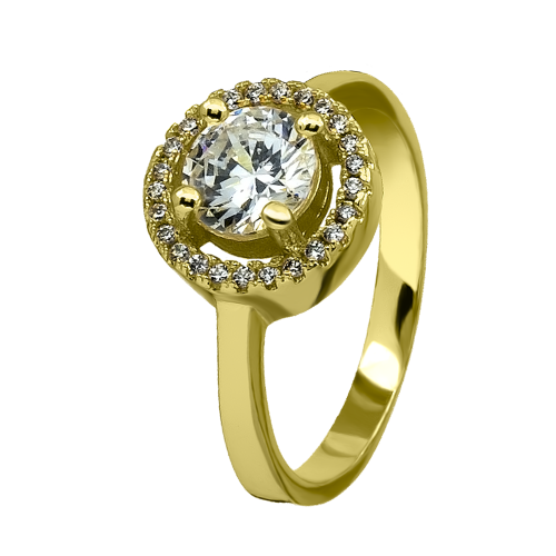 Precioso anilo en baño de oro amarillo de 18 quilates, elegante diseño de círculo, con cristal blanco corte brillante e incrustación de cristales en color blanco.