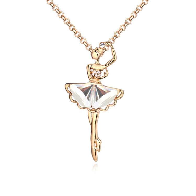 Collar en baño de oro amarillo de 18 quilates, diseño de bailarina con incrustaciones de cristales blancos.