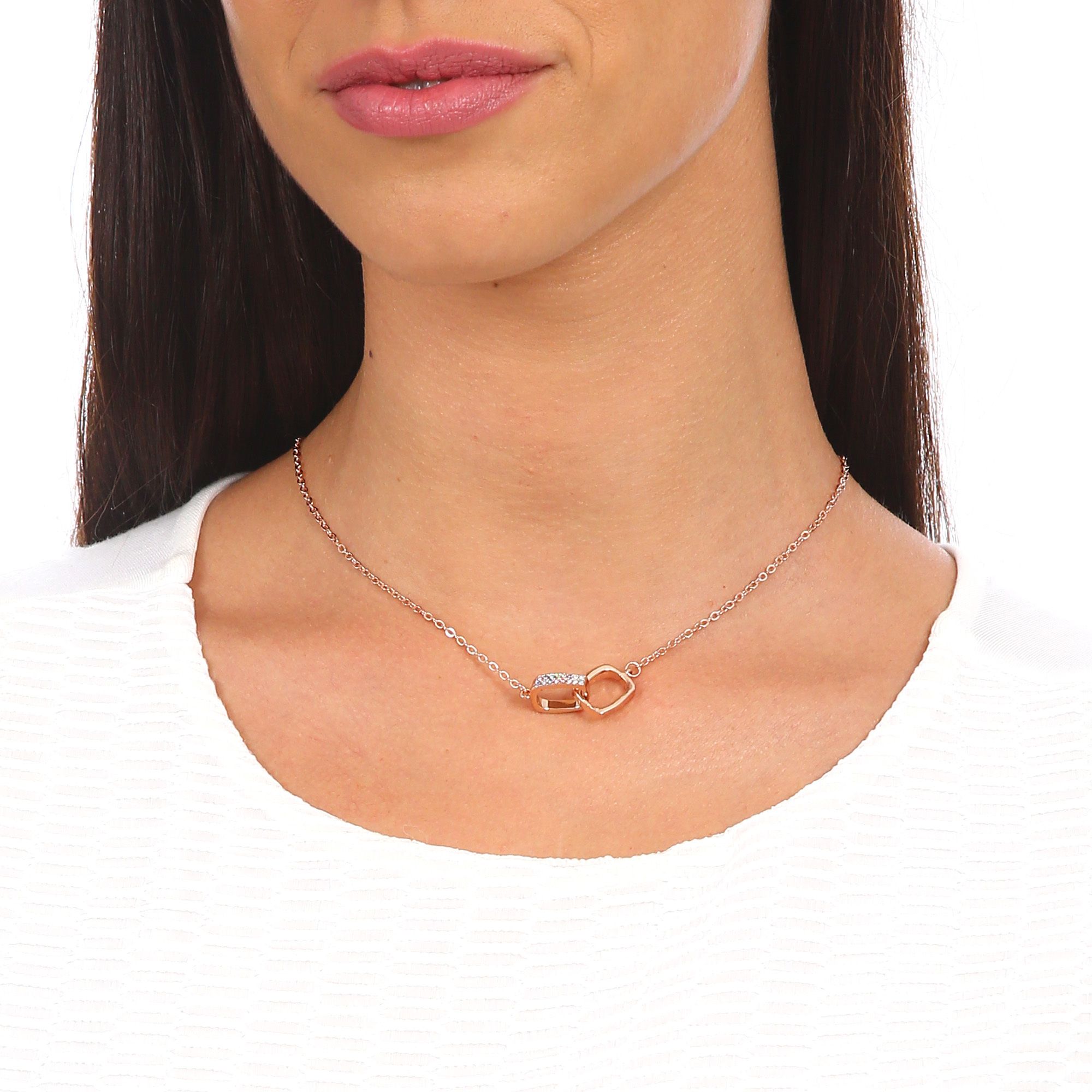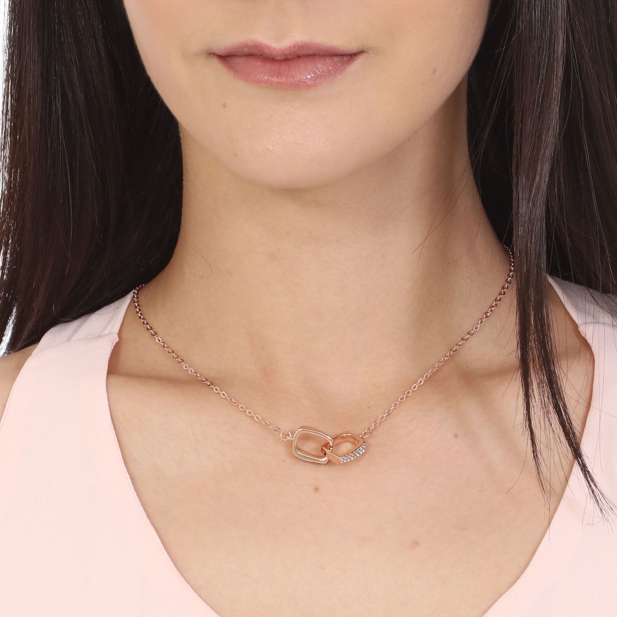 Delicado collar en baño de oro rosa de 18 quilates, diseño de aros con incrustaciones de cristales multicolores.