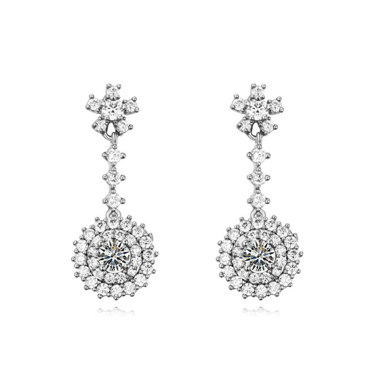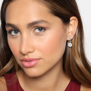 Finos aretes en baño de oro blanco de 18 quilates, hermoso diseño con incrustaciones de cristales blancos.