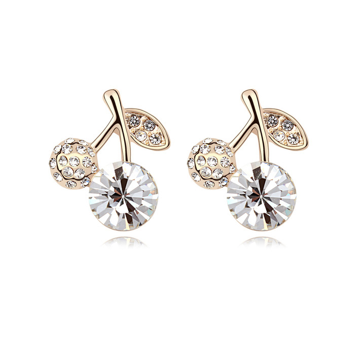 Aretes en baño de oro amarillo de 18 quilates, diseño de cereza con incrustación de cristales en color blanco.