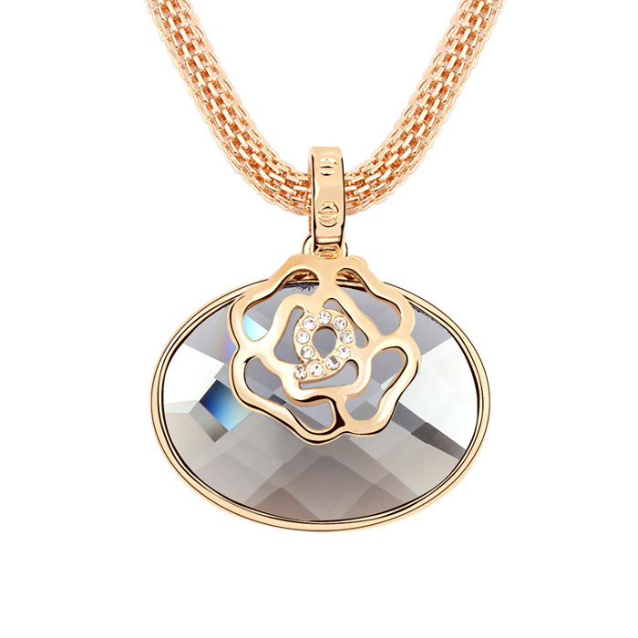 Dije en baño de oro amarillo de 18 quilates, con cristal en color humo con detalle de rosa grabada. Fabricado en una estructura de aleación de platino con rodio sin níquel. 1. joyería Hipoalergénica. 2. Incluye cajita de joyería. 3. Garantía de 30 días por defectos de fabrica.