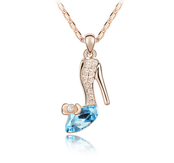 Dije con cadena en baño de oro rosa de 18 quilates, diseño de zapatilla con incrustación de cristales en color azul y blanco. Fabricado en una estructura de aleación de platino con rodio sin níquel 1. joyería Hipoalergénica. 2. Incluye cajita de joyería. 3. Garantía de 30 días por defectos de fabrica.