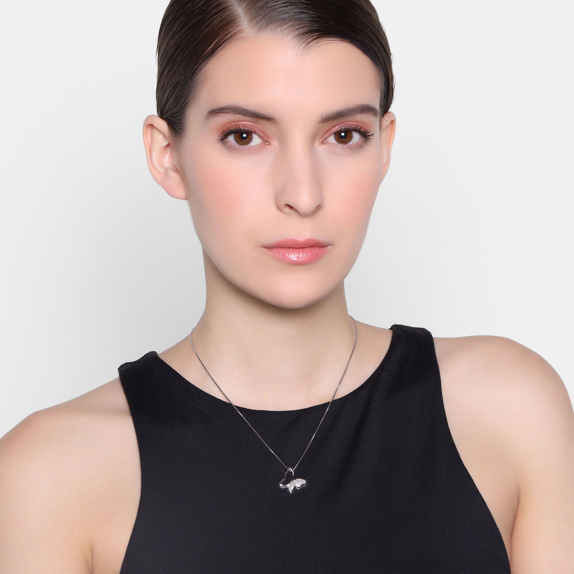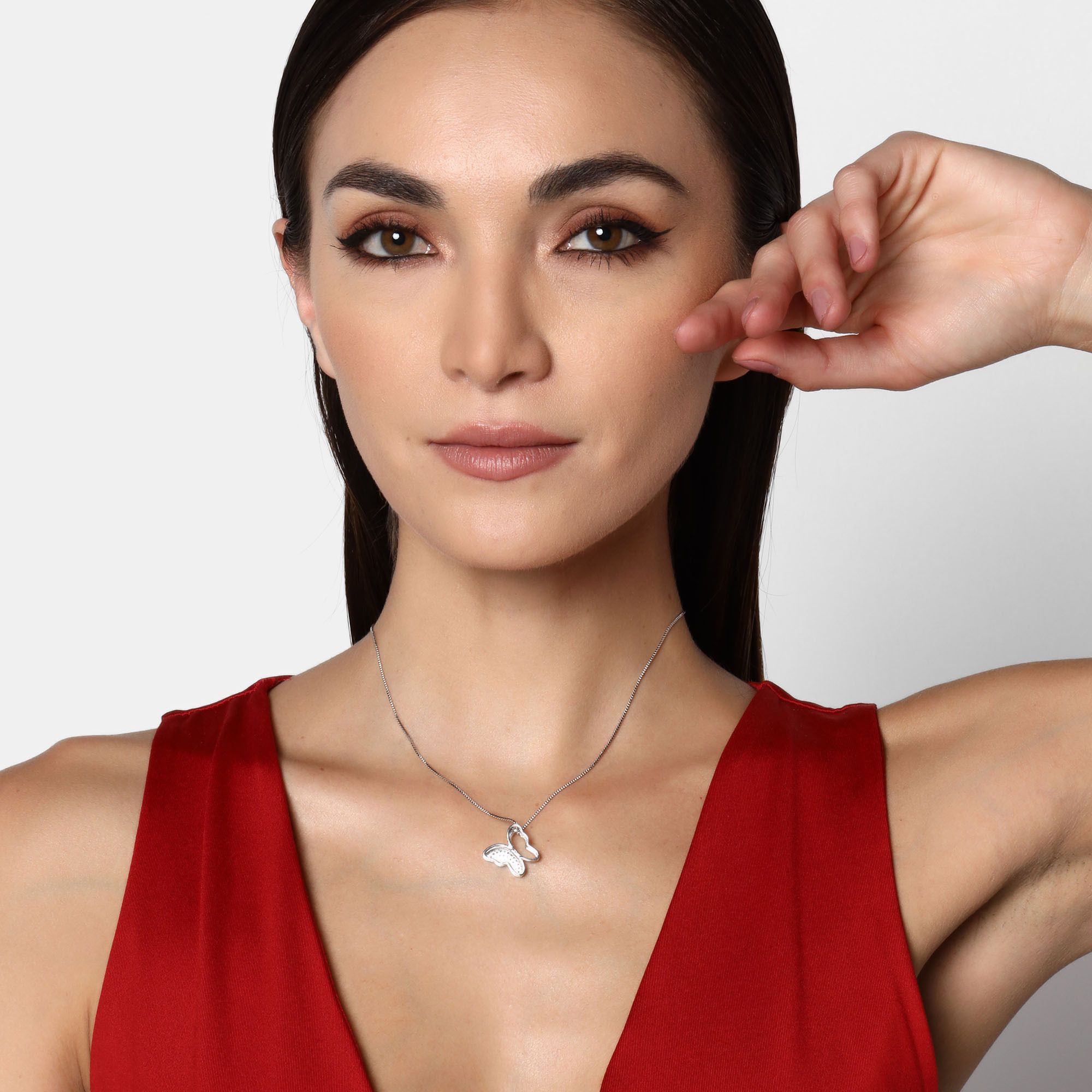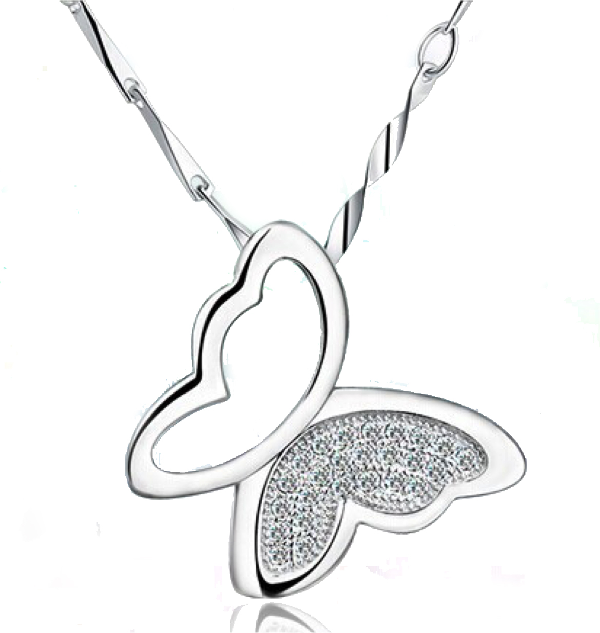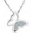 Lindo Dije en baño de oro blanco de 18 quilates, diseño de mariposa con incrustación de cristales en color blanco.