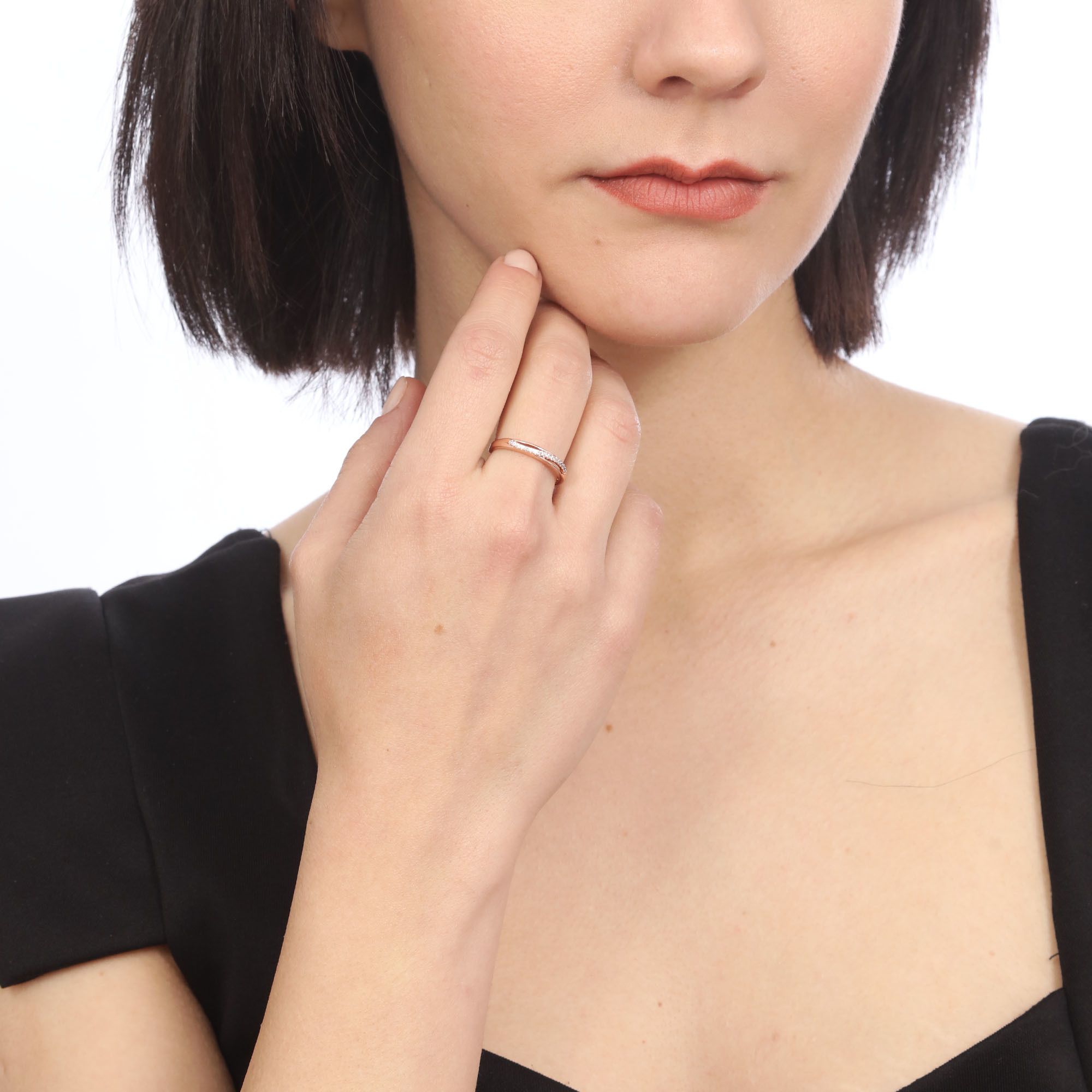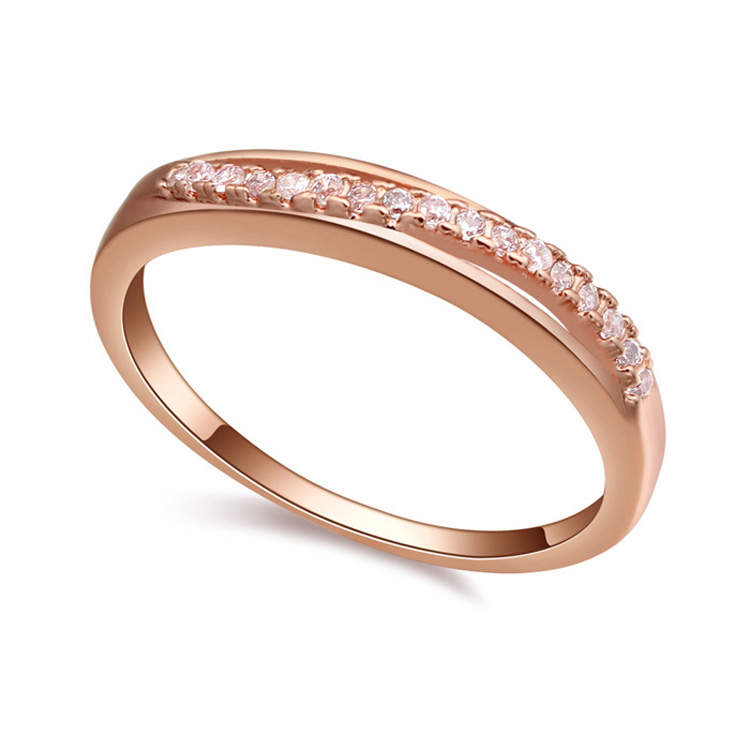Anillo en baño de oro rosa de 18 quilates, diseño de onda, con incrustación de cristales en color blanco.