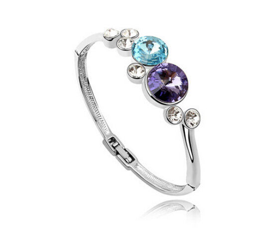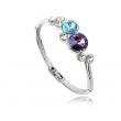 Pulsera en baño de oro blanco de 18 quilates, diseño de círculos, con cristales azul y morado corte brillante e incrustaciones de cristales blancos.