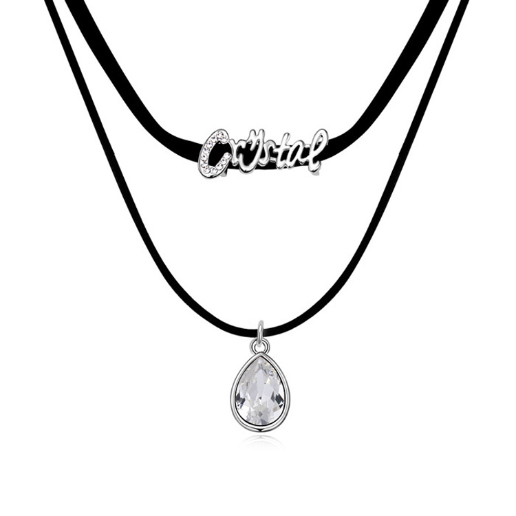 Hermoso collar, en baño de oro blanco de 18 quilates, diseño de palabra "Crystal", cristal blanco corte pera e incrustaciones de cristales blancos.