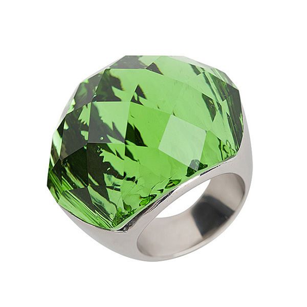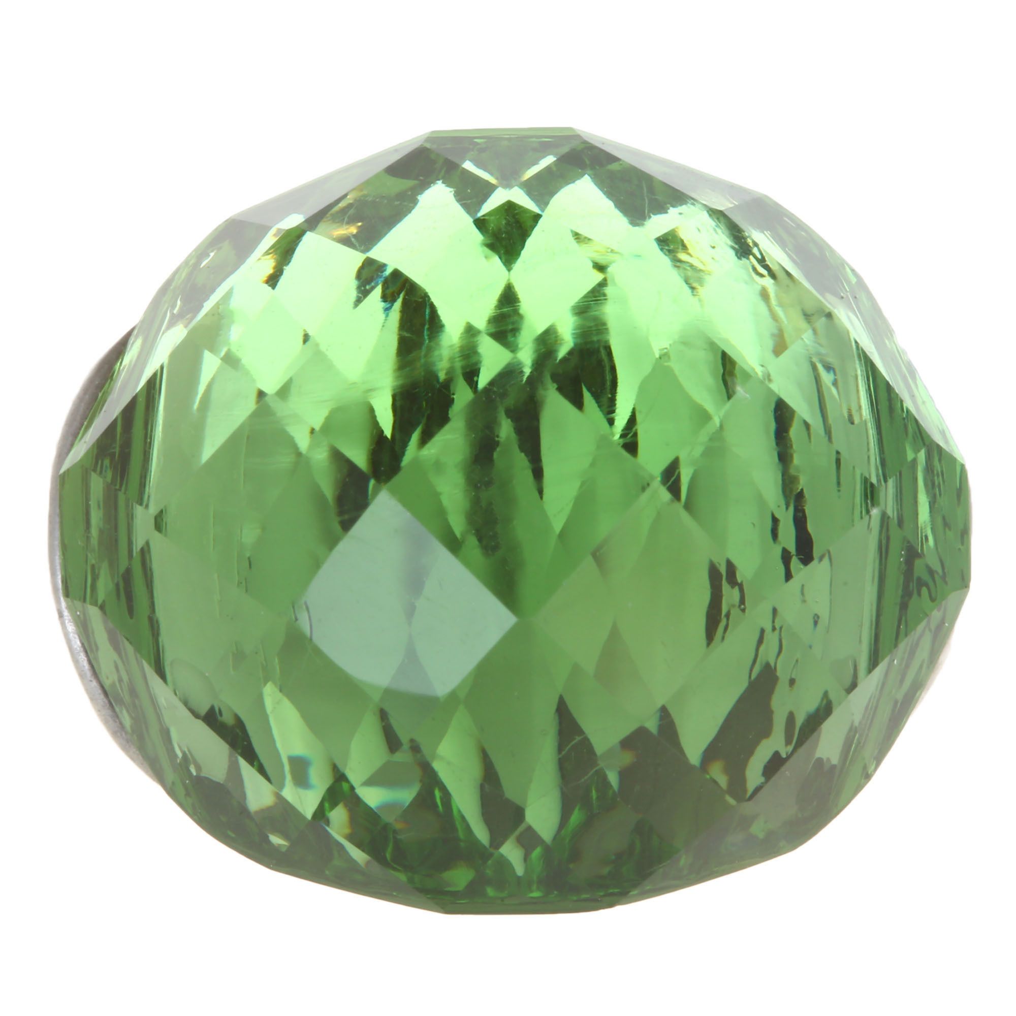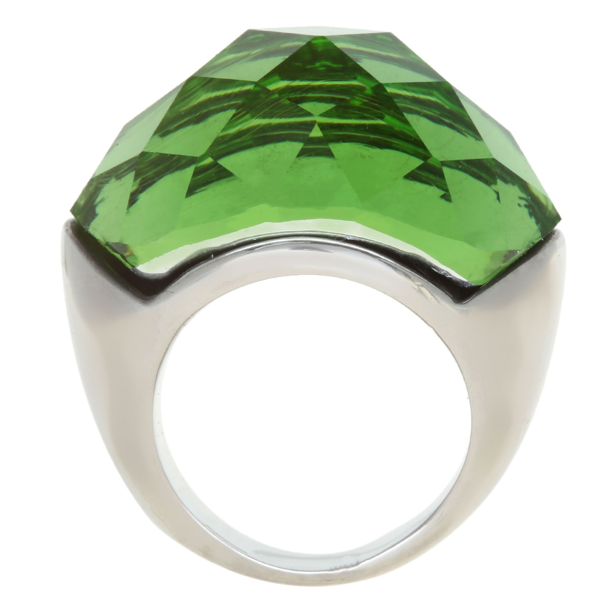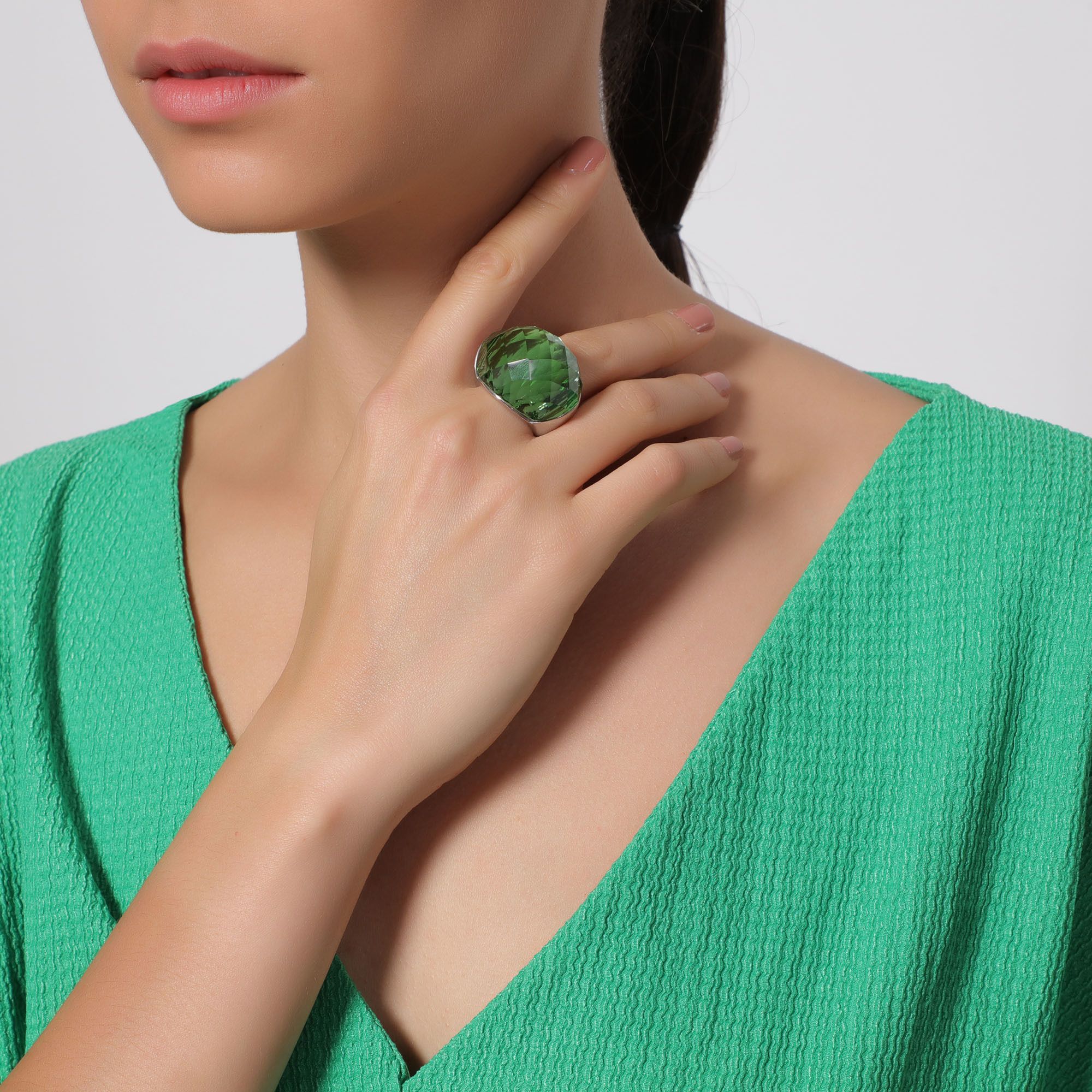 Elegante anillo, con baño de oro blanco de 18 quilates, estilo convexo, con cristal facetado en color verde.