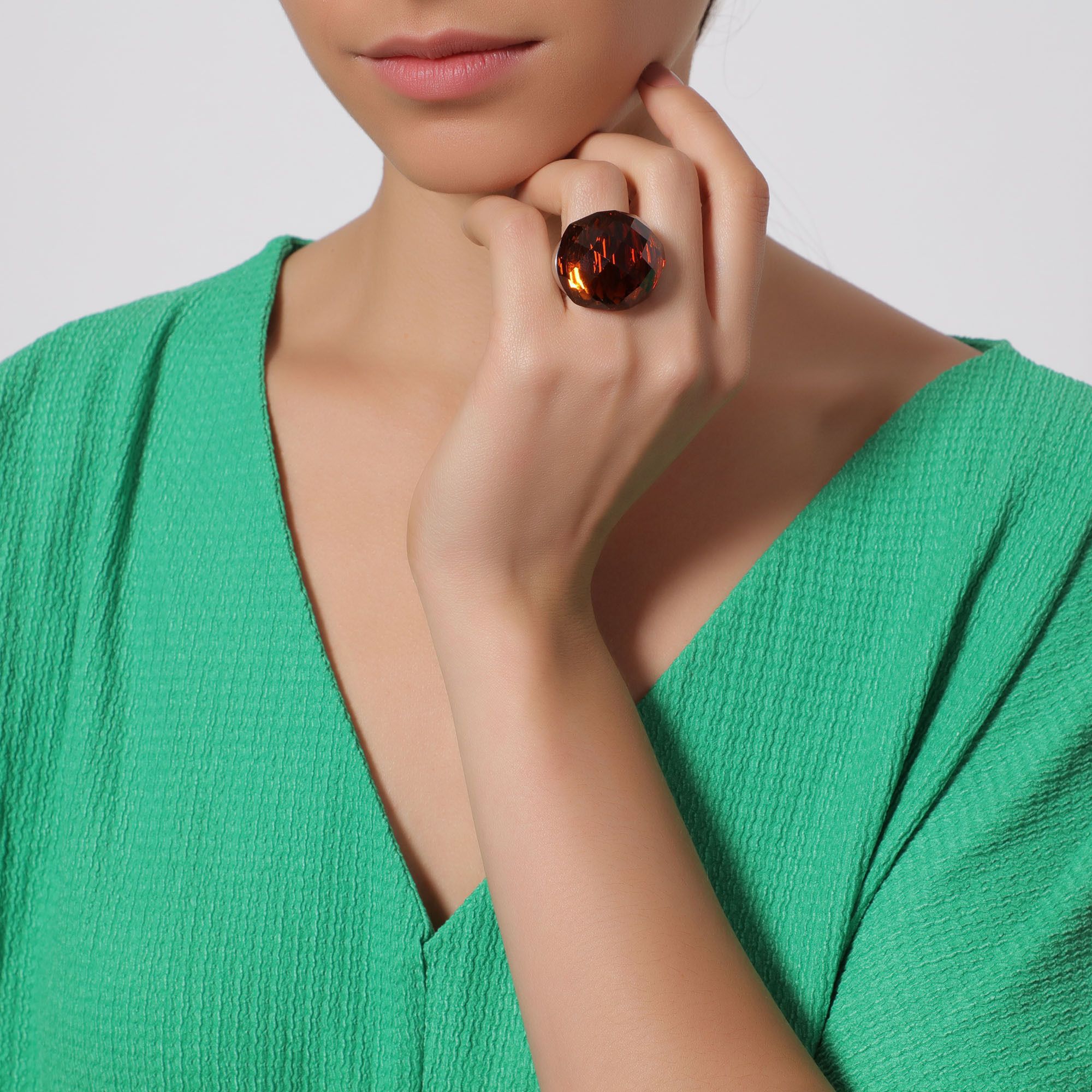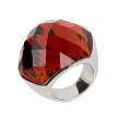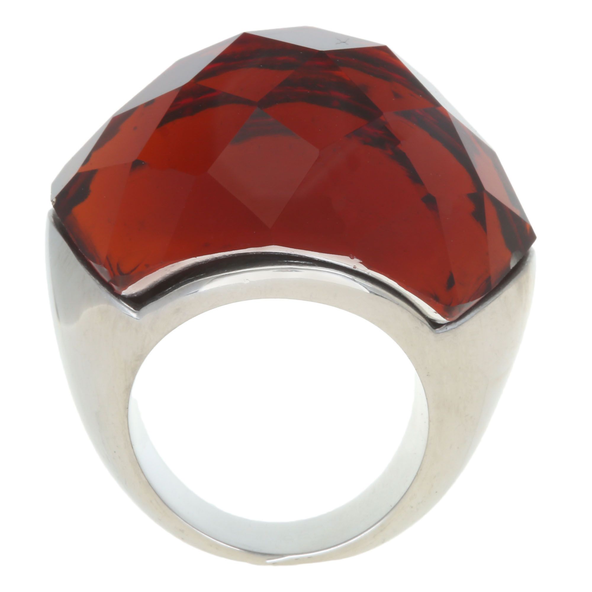 Elegante anillo con baño de oro blanco de 18 quilates, estilo convexo, con cristal facetado en color rojo.