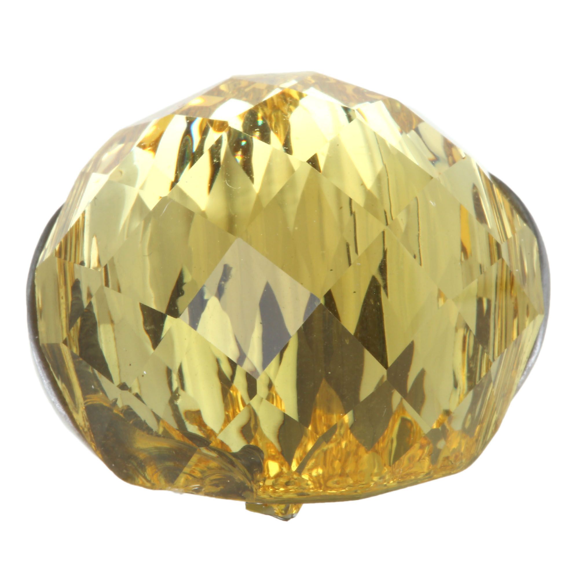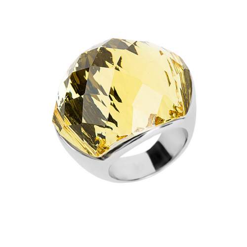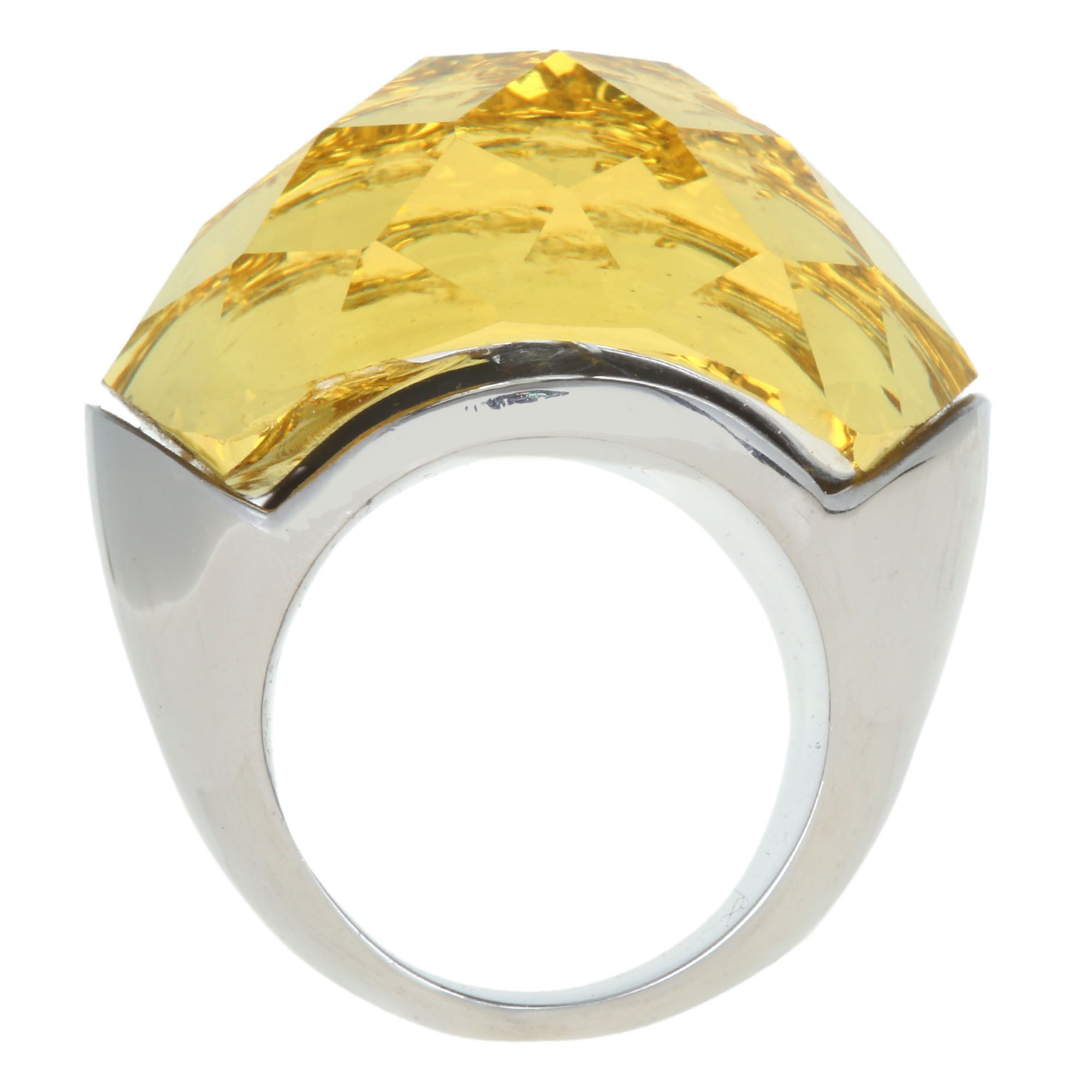 Elegante anillo con baño de oro blanco de 18 quilates, estilo convexo, con cristal facetado en color amarillo.