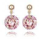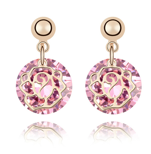 Elegantes aretes en baño de oro amarillo de 18 quilates, diseño de rosa, estilo calado, con cristal rosa corte brillante.