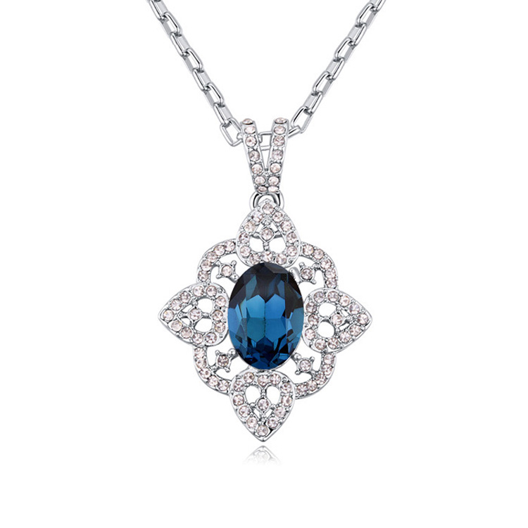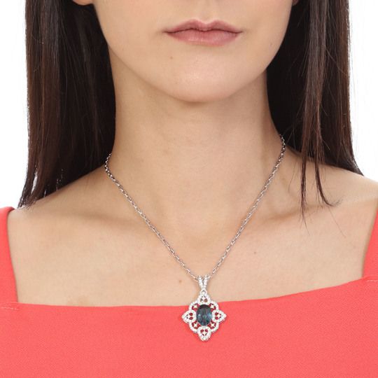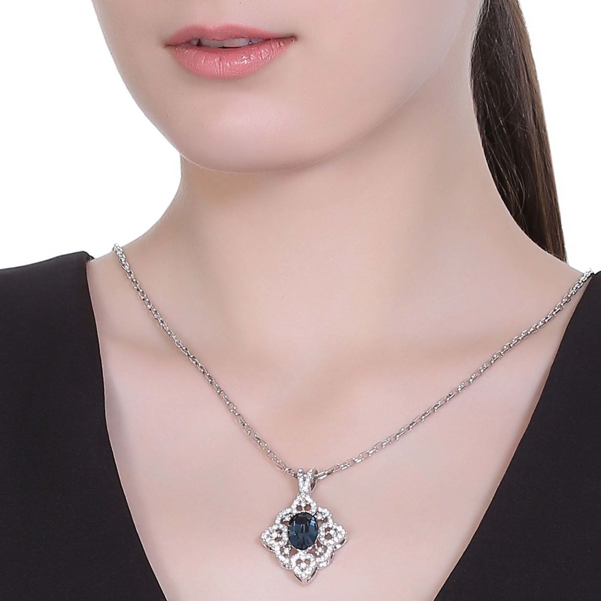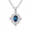 Elegante Dije en baño de oro blanco de 18 quilates, estilo filigrana con incrustación de cristales en color azul y blanco. Fabricado en una estructura de aleación de platino con rodio sin níquel 1. joyería Hipoalergénica. 2. Incluye cajita de joyería. 3. Garantía de 30 días por defectos de fabrica.