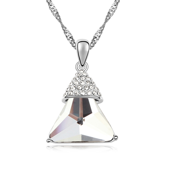 Dije en baño de oro blanco de 18 quilates, diseño de triángulo con incrustación de cristales en color blanco. Fabricado en una estructura de aleación de platino con rodio sin níquel. 1. joyería Hipoalergénica. 2. Incluye cajita de joyería. 3. Garantía de 30 días por defectos de fabrica.