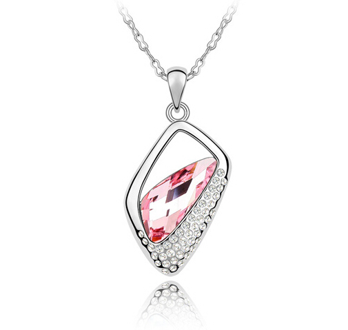 Dije con cadena en baño de oro blanco de 18 quilates, con incrustación de cristales en color blanco y rosa Fabricado en una estructura de aleación de platino con rodio sin níquel 1. joyería Hipoalergénica. 2. Incluye cajita de joyería. 3. Garantía de 30 días por defectos de fabrica.