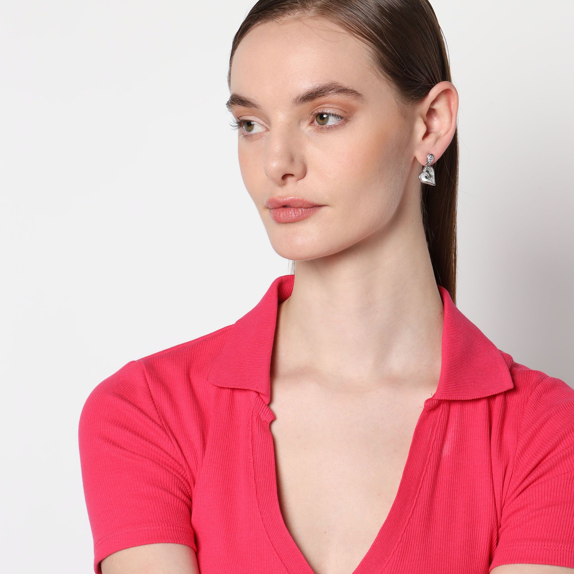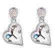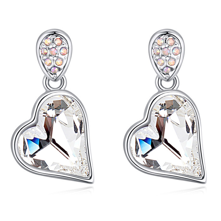 Aretes en baño de oro blanco de 18 quilates, diseño de corazón en cristal blanco e incrustaciones de cristales blancos.