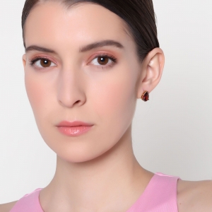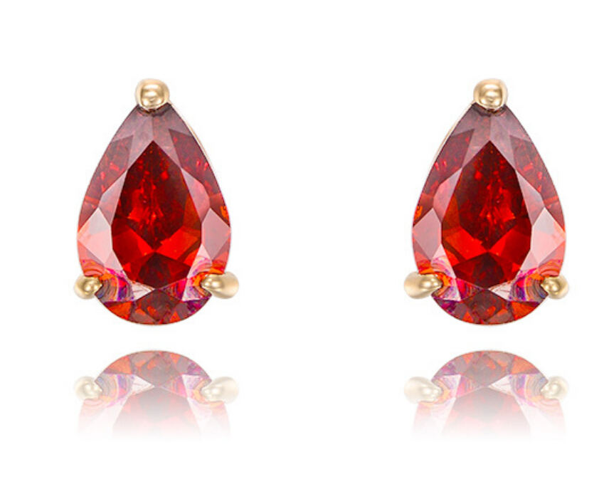 Lindos aretes en baño de oro amarillo de 18 quilates, fino diseño, con cristal rojo corte pera.