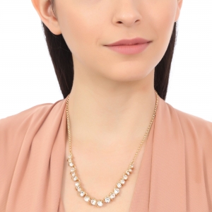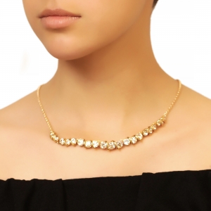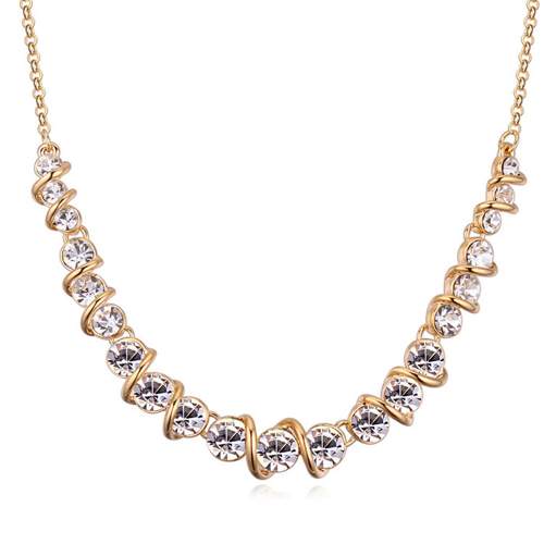 Hermoso Collar en baño de oro amarillo de 18 quilates, fino diseño de espiral con incrustación de cristales en color blanco. Fabricado en una estructura de aleación de platino con rodio sin níquel 1. joyería Hipoalergénica. 2. Incluye cajita de joyería. 3. Garantía de 30 días por defectos de fabrica.
