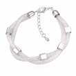 Pulsera con detalles en baño de oro blanco de 18 quilates y malla entrelazada con cristales blancos dentro.