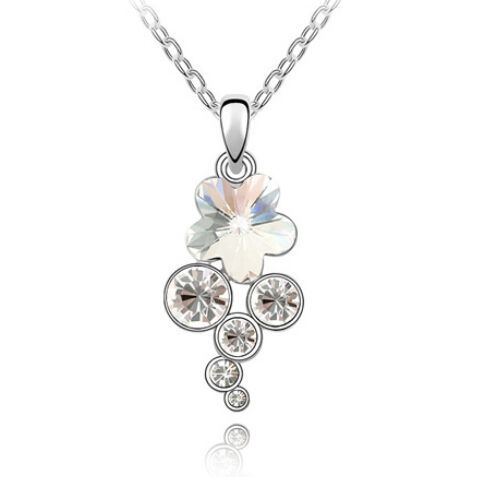 Dije con cadena en baño de oro blanco de 18 quilates, fino diseño de círculos con incrustación de cristales en color blanco. Fabricado en una estructura de aleación de platino con rodio sin níquel 1. joyería Hipoalergénica. 2. Incluye cajita de joyería. 3. Garantía de 30 días por defectos de fabrica.